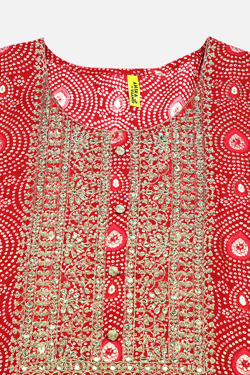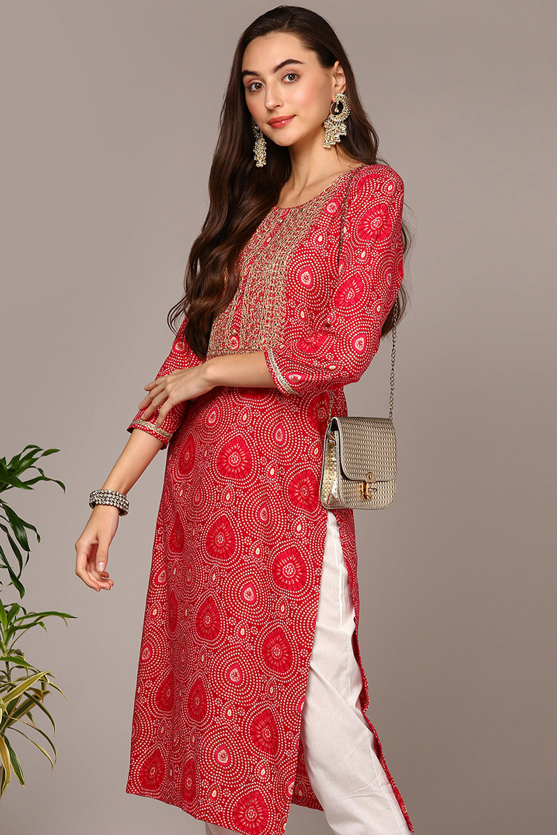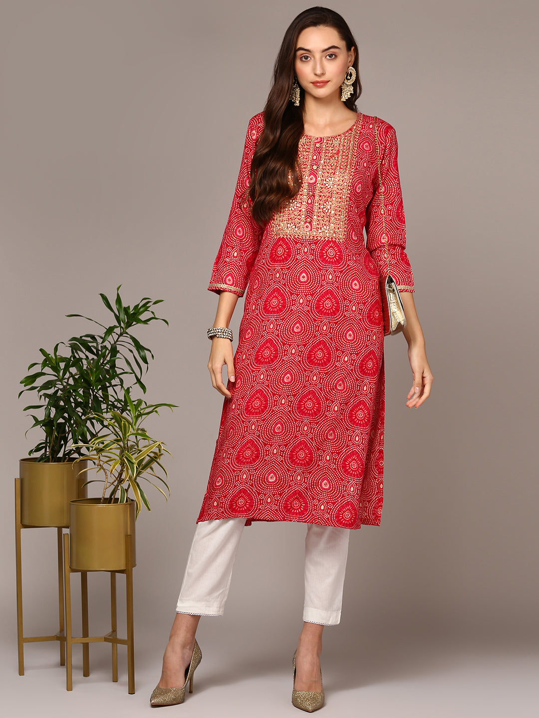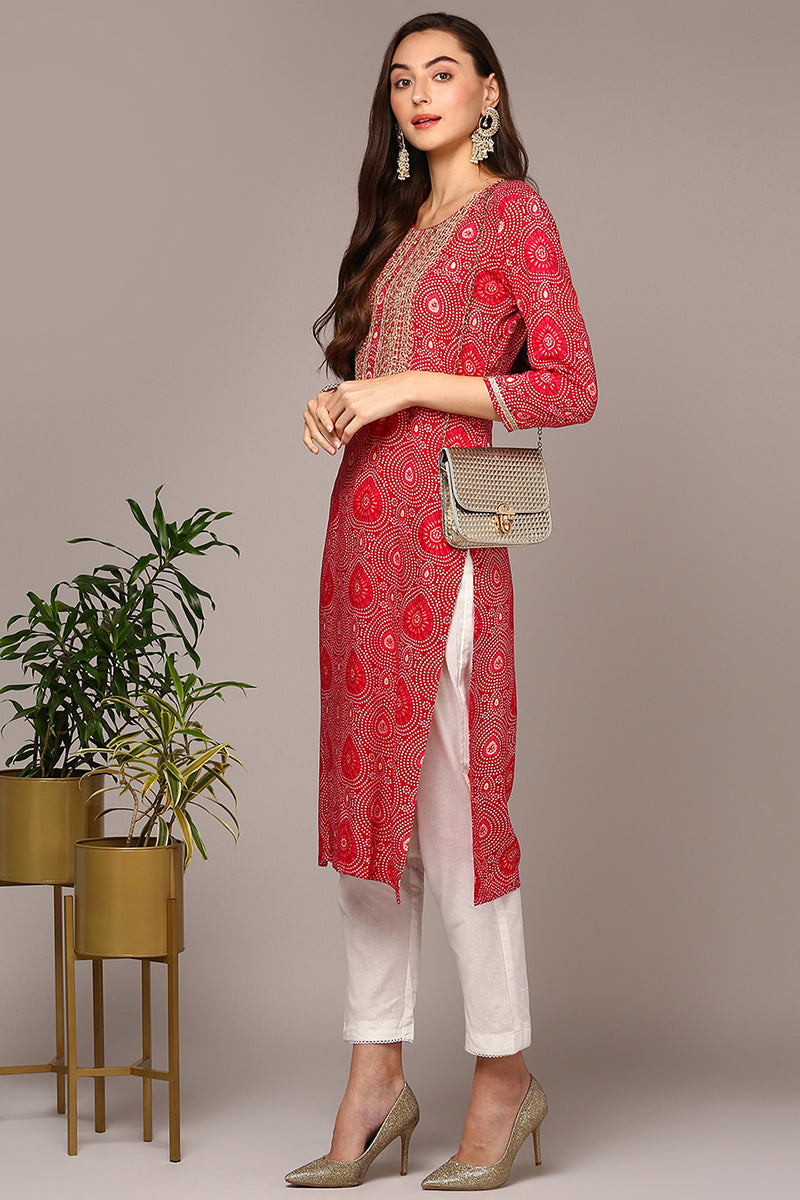 Women's Pink Viscose Rayon Bandhani Straight Kurta