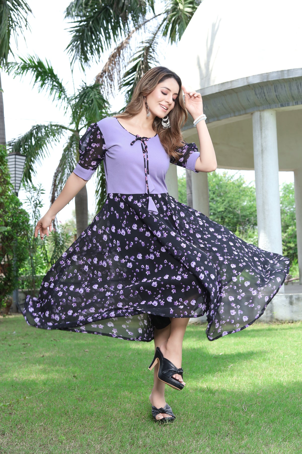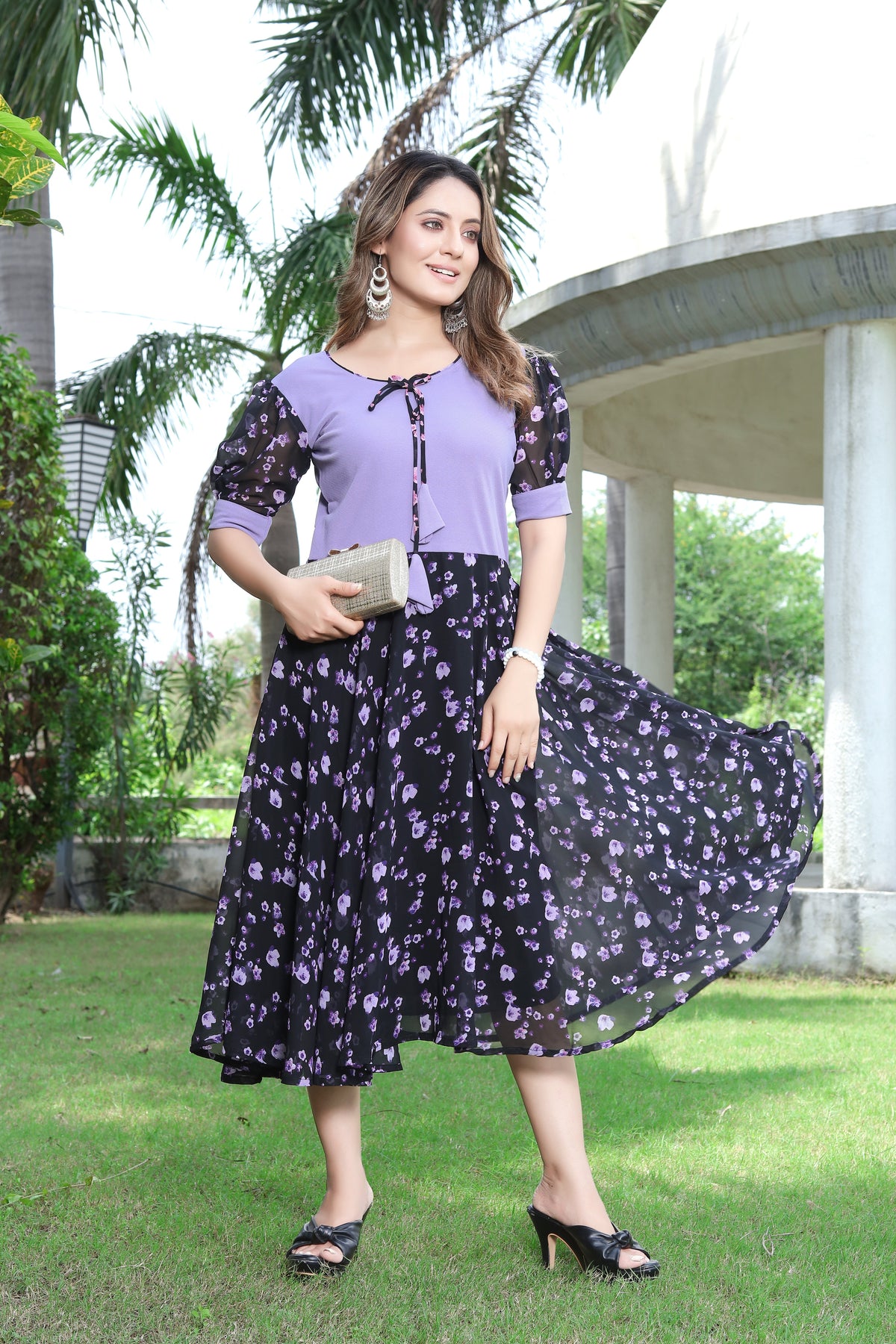 Women's Lavender Lycra & Georgette Digital Printed Kurta - Pr Fashion