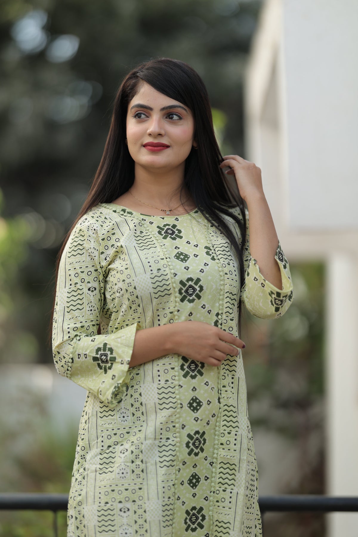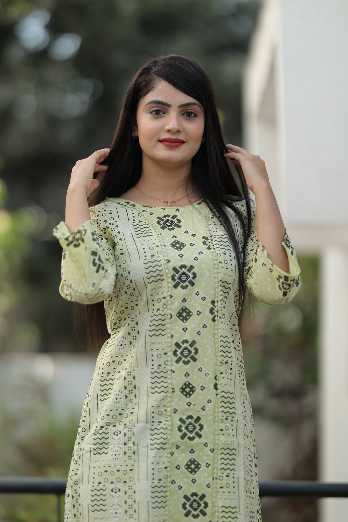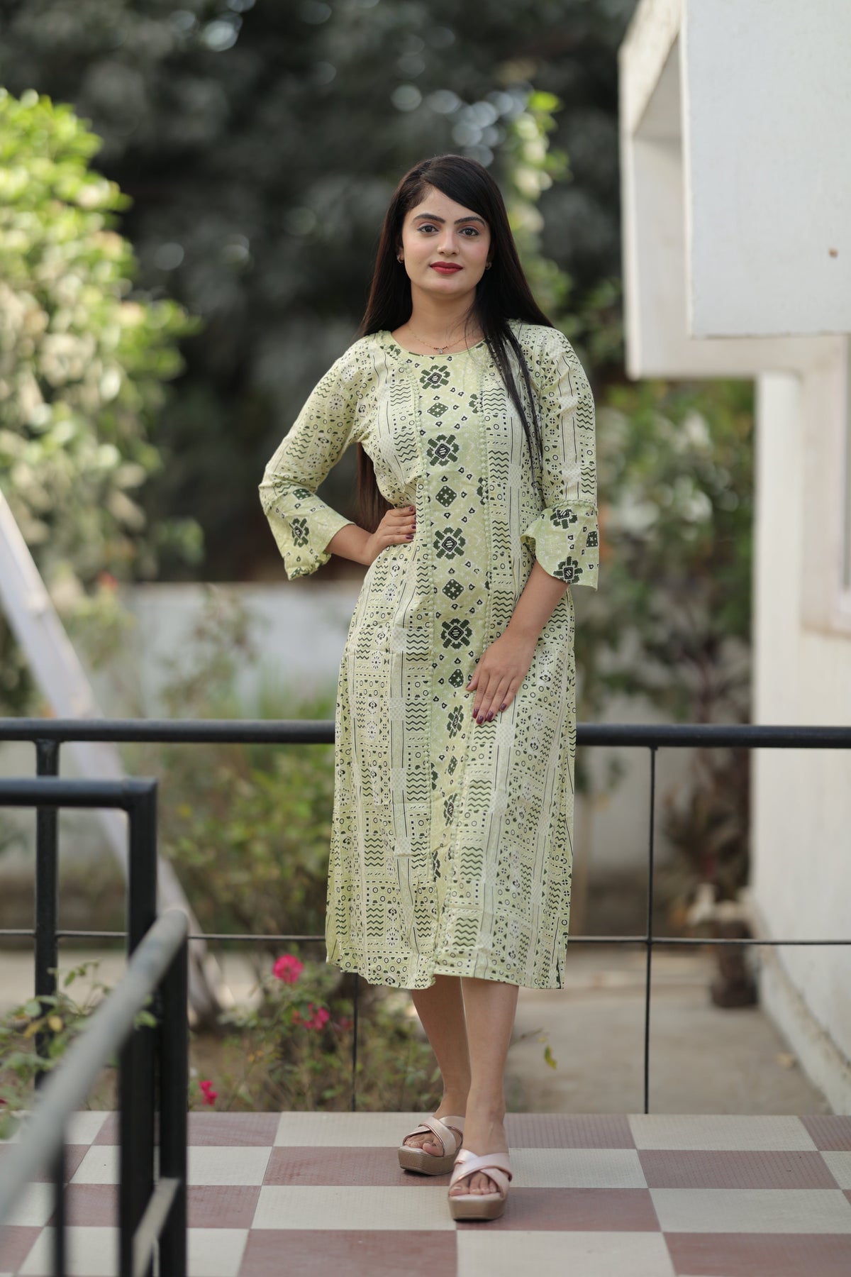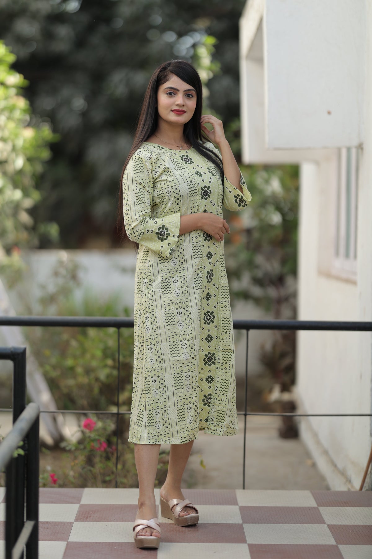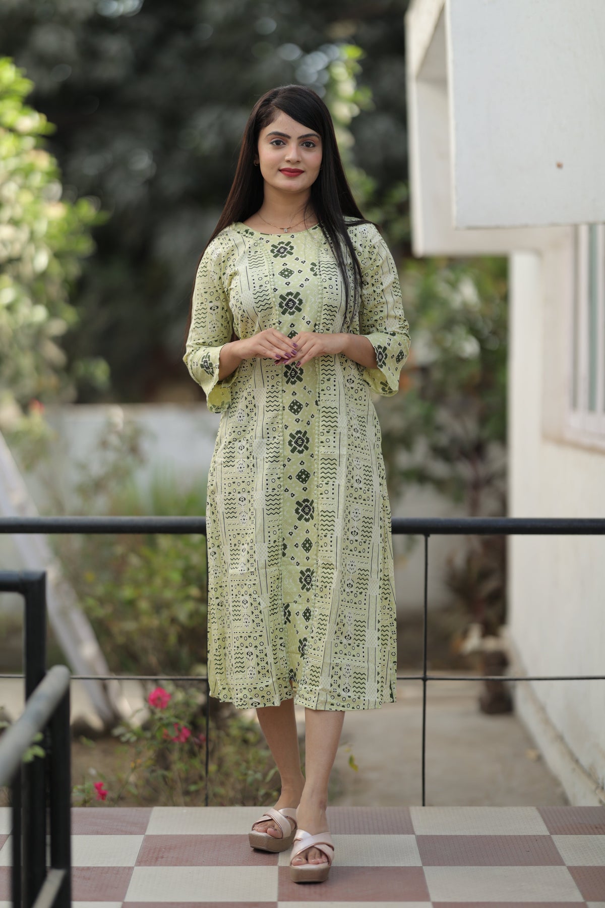 Women's Olive Pure Cotton Digital Printed Kurta - Pr Fashion