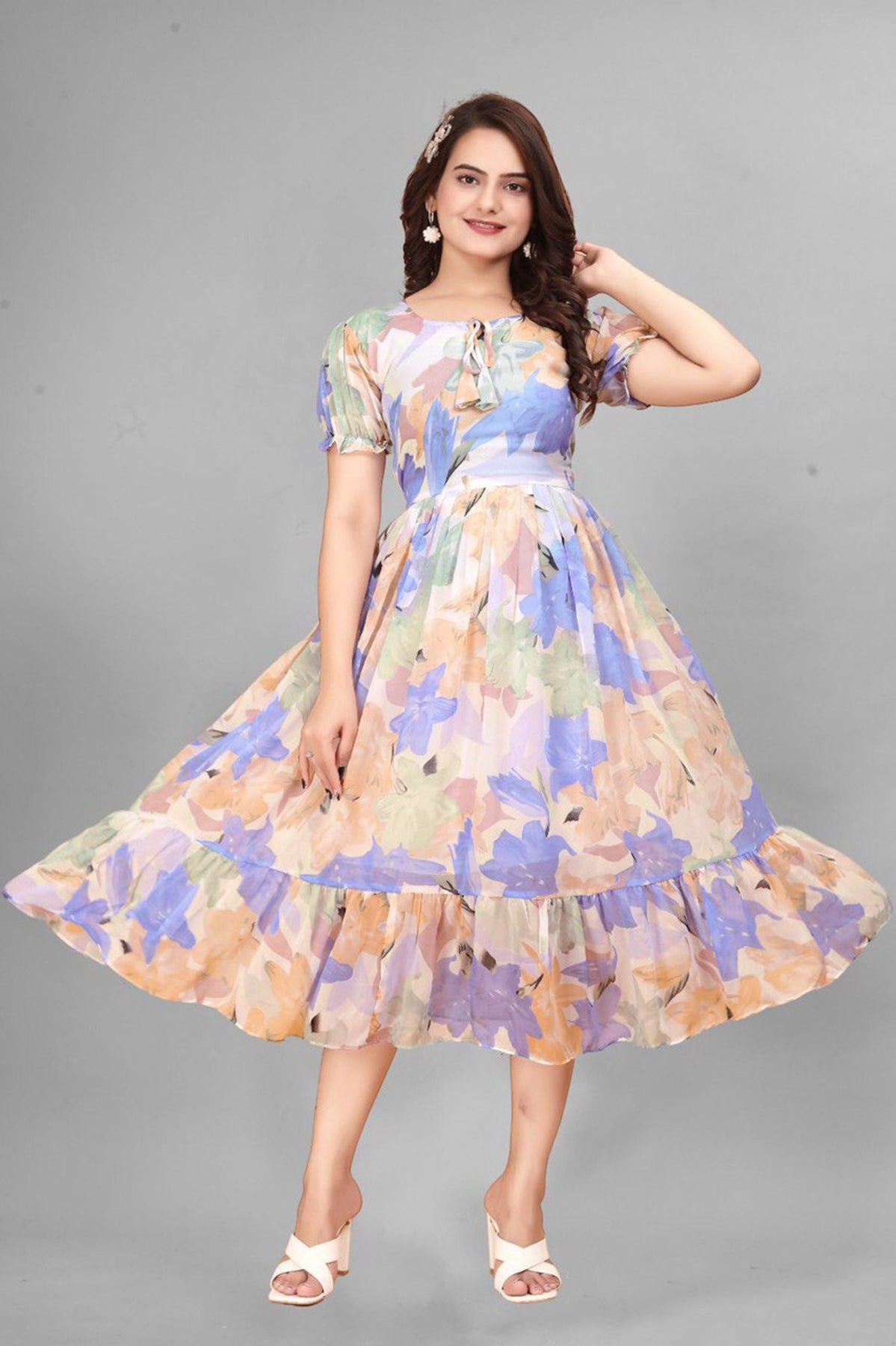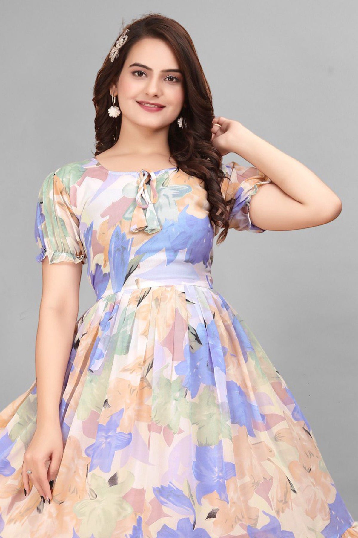Top Details : Length :45 Inch Fabric :Georgette Color :Multi Color Work/Pattern :Digital Printed Neck Line :Round