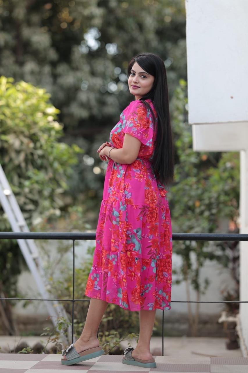 Women's Pink Georgette Digital Printed Kurta - Pr Fashion