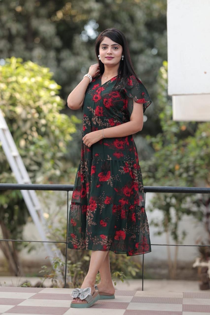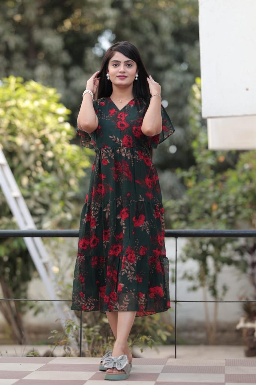 Top Details : Length :44 Inch Fabric :Georgette Color :Green Work/Pattern :Digital Printed Neck Line :V Neck