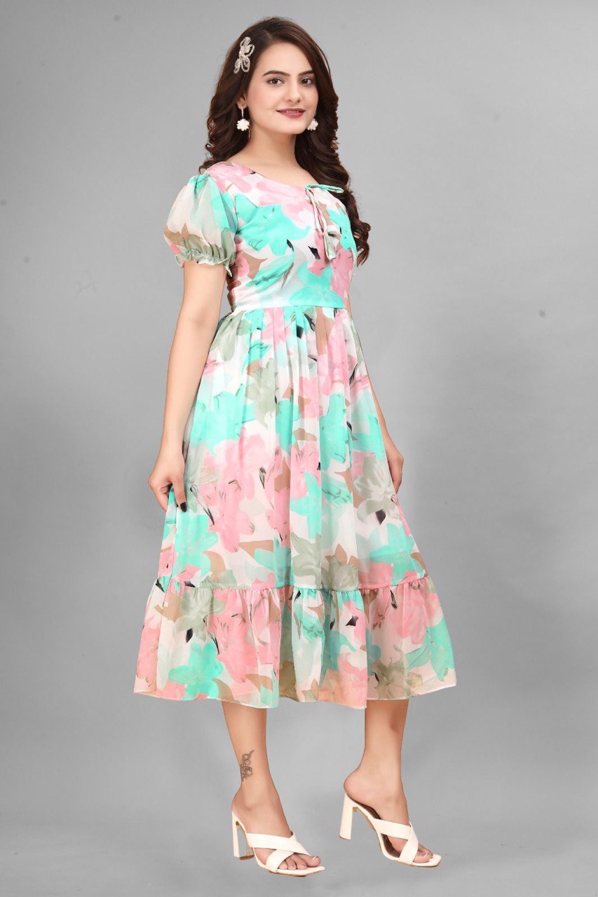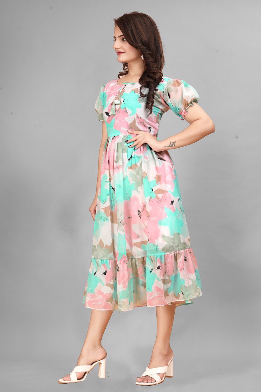 Top Details : Length :44 Inch Fabric :Georgette Color :Green Work/Pattern :Digital Printed Neck Line :Round