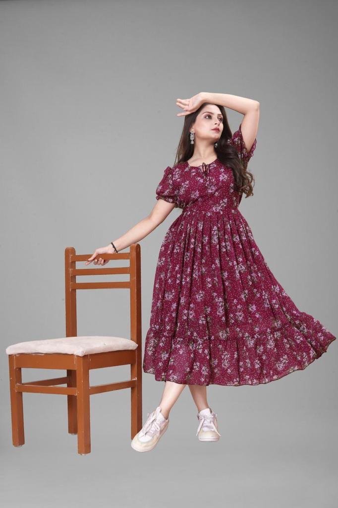 Top Details : Length :44 Inch Fabric :Georgette Color :Marron Work/Pattern :Digital Printed Neck Line :Round