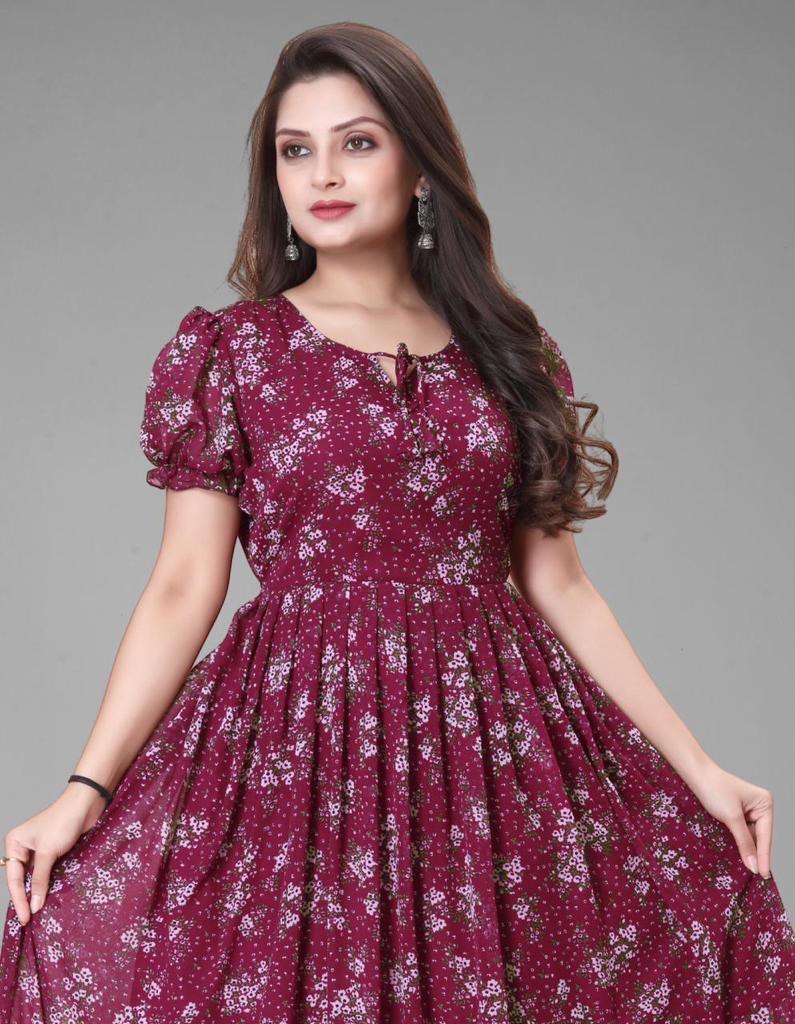 Women's Marron Georgette Digital Printed Kurta - Pr Fashion