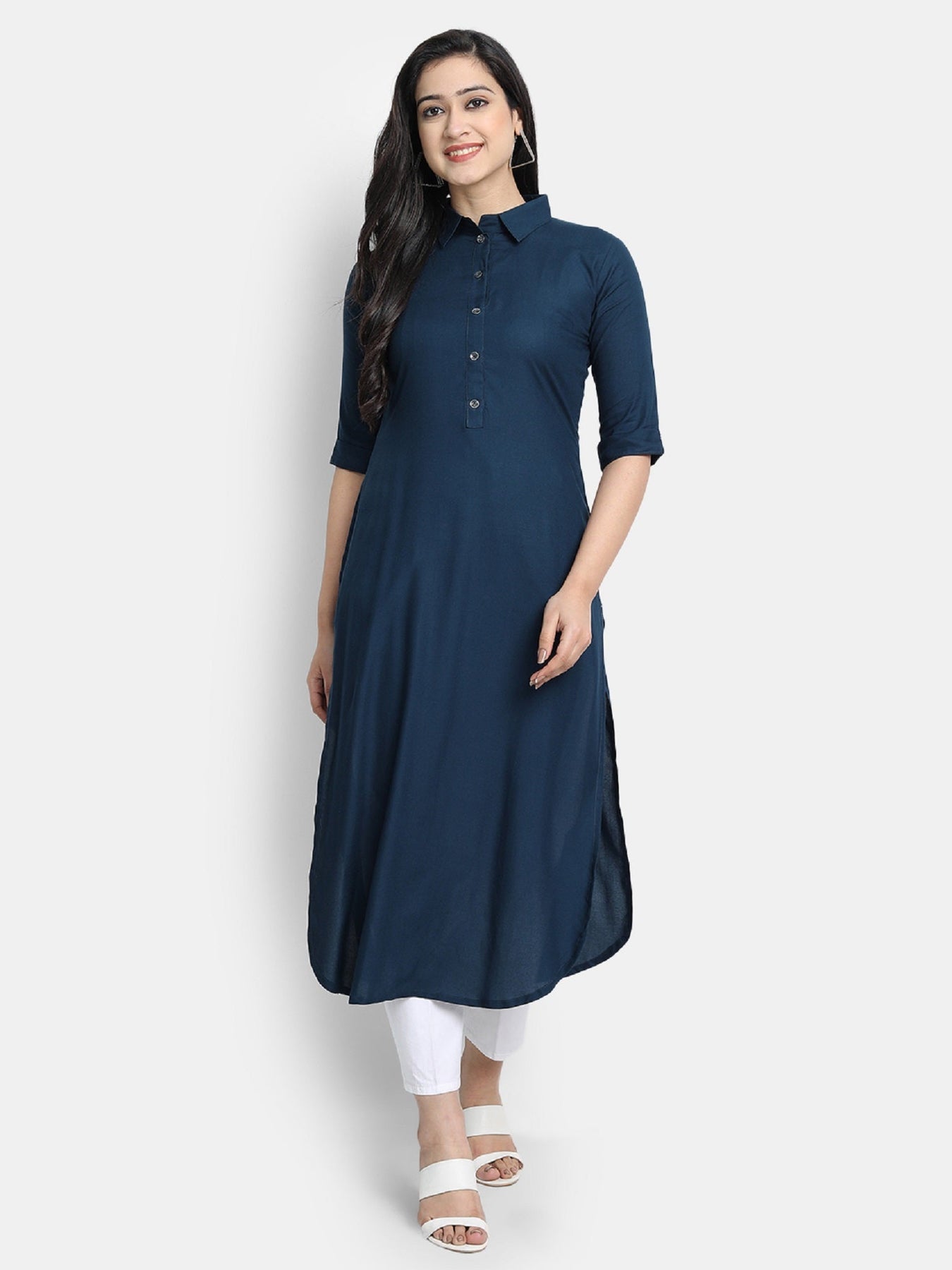 Casual Wear Plain Kurti Collection Pack Contains: Kurti - 1 Shape: Round Fabric: Rayon Color: Blue Work: Plain Kurti Wash And Care: Dry Clean Weight: 300G