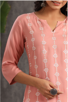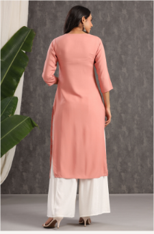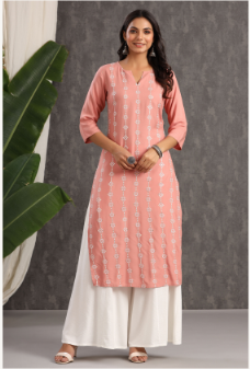 Juniper Women Onionpink Rayon Embroidered Straight Kurta perfect for fusion clothing with a traditional twist, trendy silhouette and latest styles