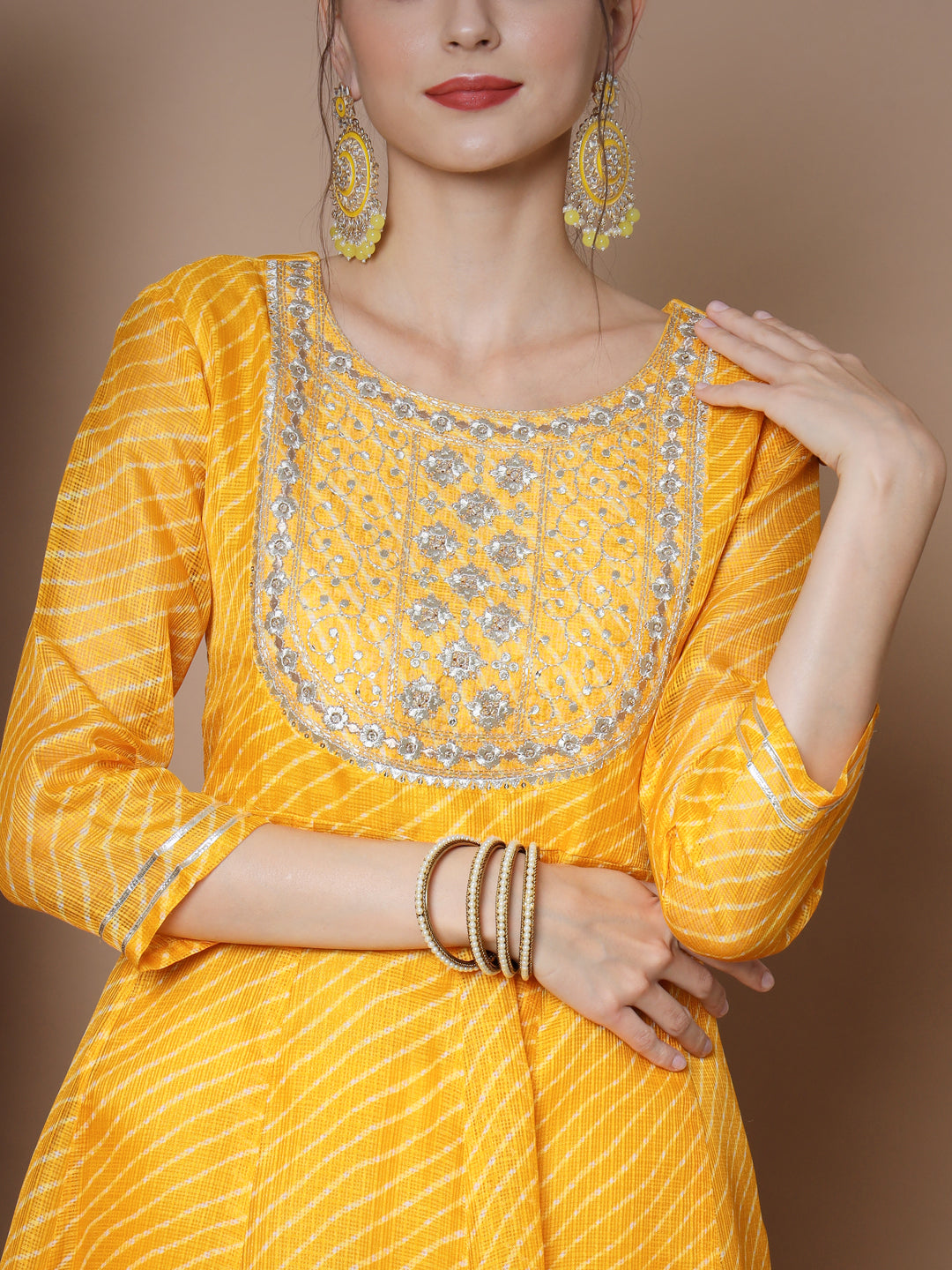 Yellow Printed Kurta Top Type :Kurtas Pattern :Printed Neck :Round Neck Color :Yellow Fabric :Chanderi Wash Care :Machine Wash