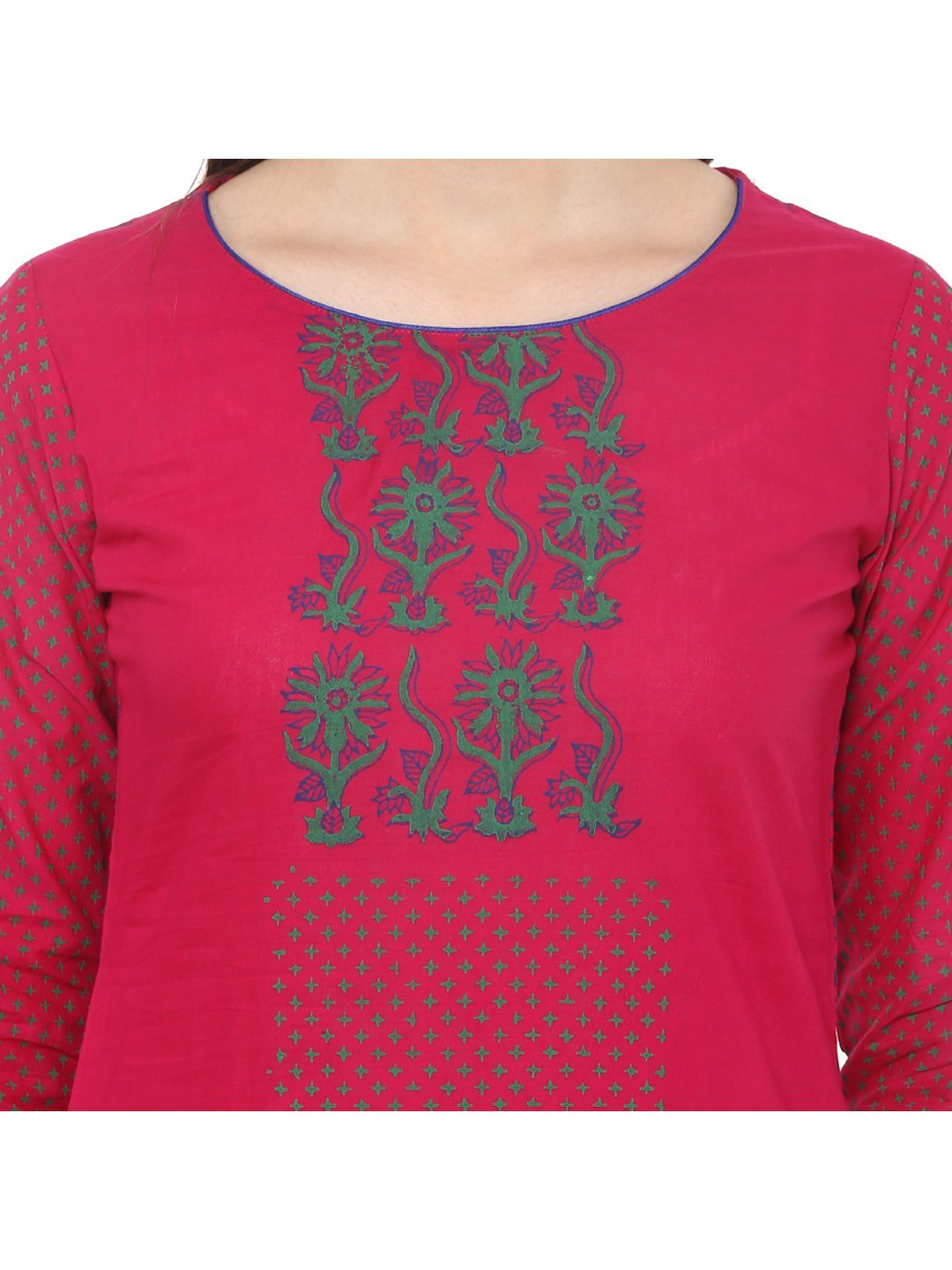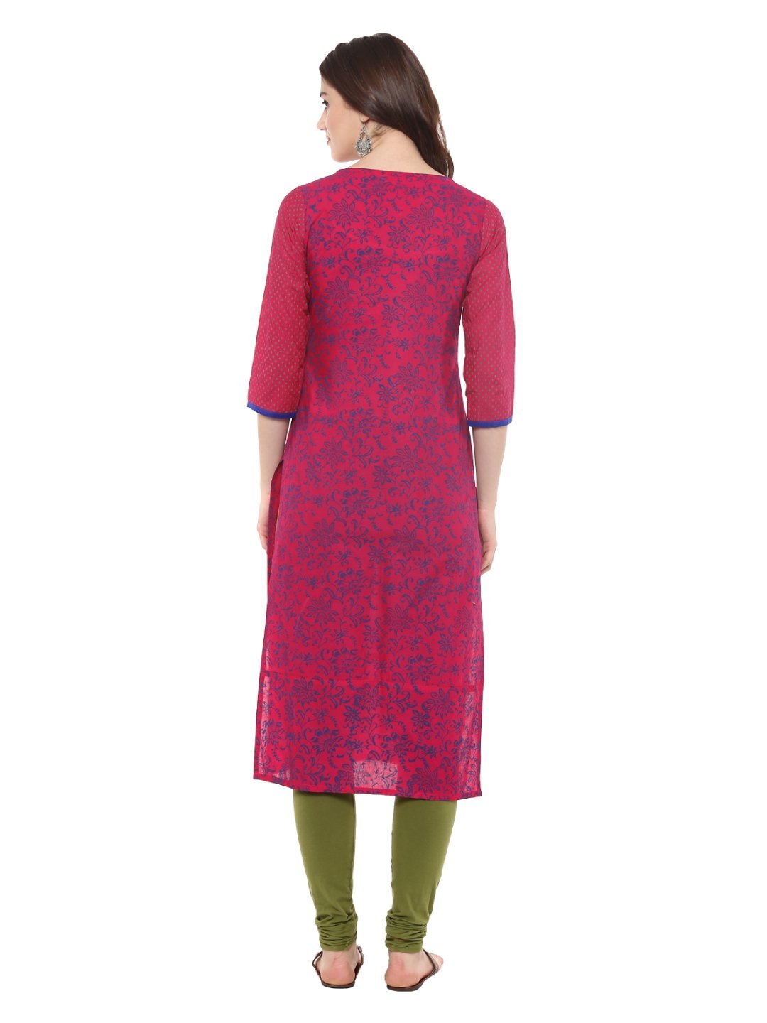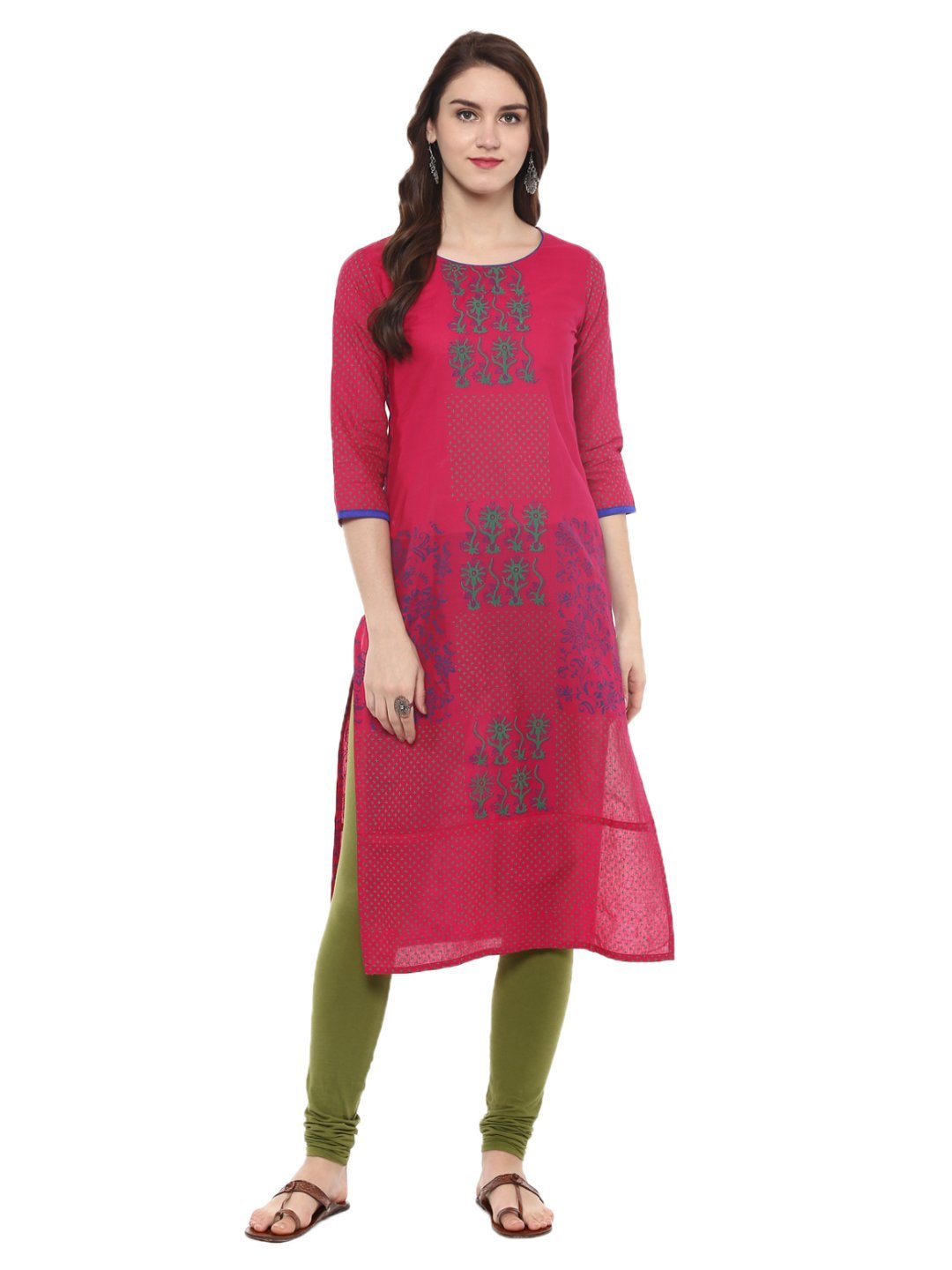 A Young And Festive Pink Cotton Kurta Featuring A Classic Round Neckline, Three-Fourth Sleeves And A Straight Silhouette. It Has Further Been Enhanced By Vibrant Contrast Hand Block Floral Prints Topped With Minimal Lace Details.Inspiration:Inspired By The Beautiful Sunset Sky . "Sanjh" Is A Mesmerizing Collection Of Refreshing Silhouettes To Entrust Your Style With A Surreal Charm."Styling Tipswhen To Wear: College, Professional Parties, Daily Wear, Offices.Bottom: White Or Turquoise (For Regular Outings) Or Style With A Golden Or Turquoise-Multicolored Printed Dupattas For Parties And Get Togethers Accessories: Long Earrings ,Minimal Jhumkis, Studs Or Simple Bracelet Will Give An Elegant Look. Footwear: Sandals, Mules, Wedges, Peep Toes Heels, Kolhapuriswash Care: Gentle Handwash, Don'T Bleach, Dry In Shadenote: This Product Doesn'T Come With Bottoms Or Any Other Accessoriesshipping &Amp; Deliverythe Product Will Be Shipped Within 48 Workings And Will Be Delivered To You With 5-7 Days Depending On Your Location.