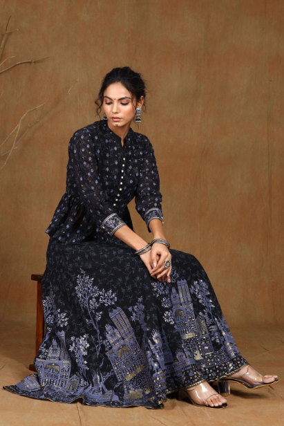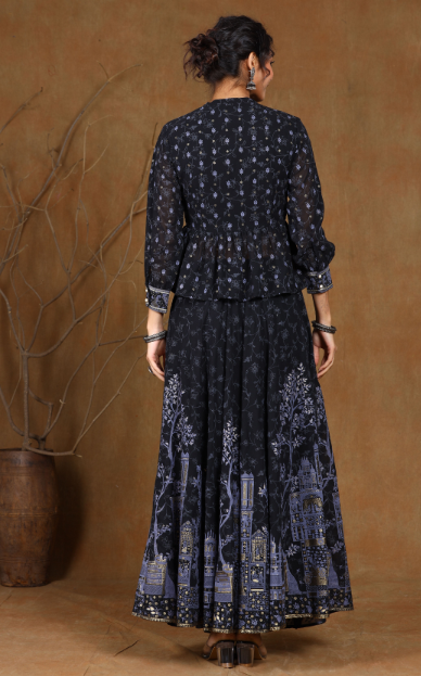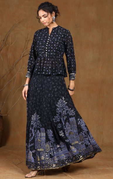 PRODUCT DESCRIPTION :Juniper Black Georgette Printed Lehenga Choli with Shantoon Lining