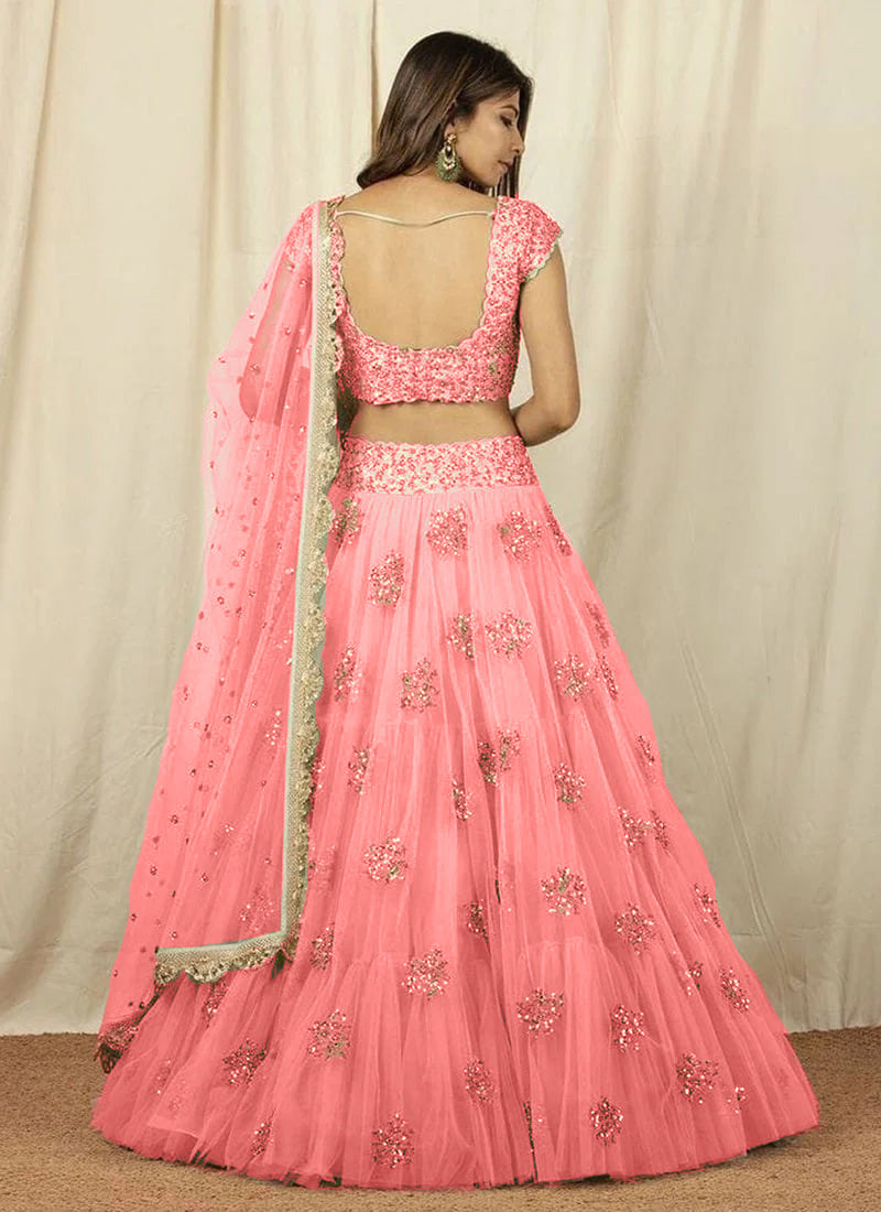 Women's Pink Net Embroidered Lehenga Set - Yash Enterprise