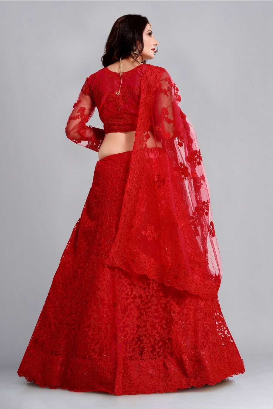 Women's Red Net Thread Embroidered Designer Lehenga Choli Set