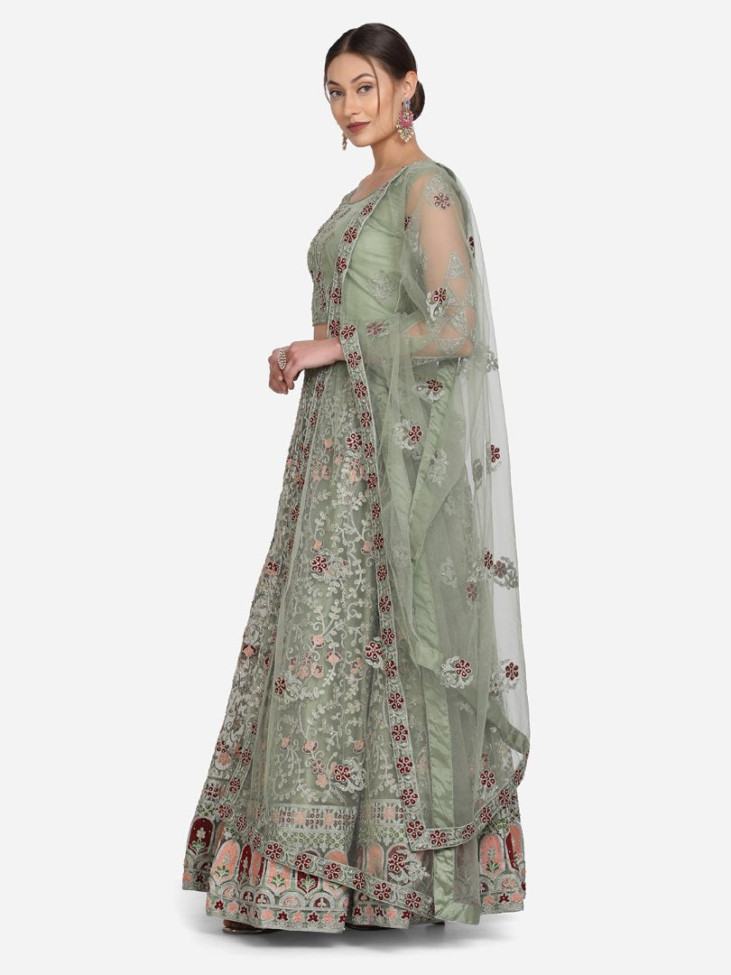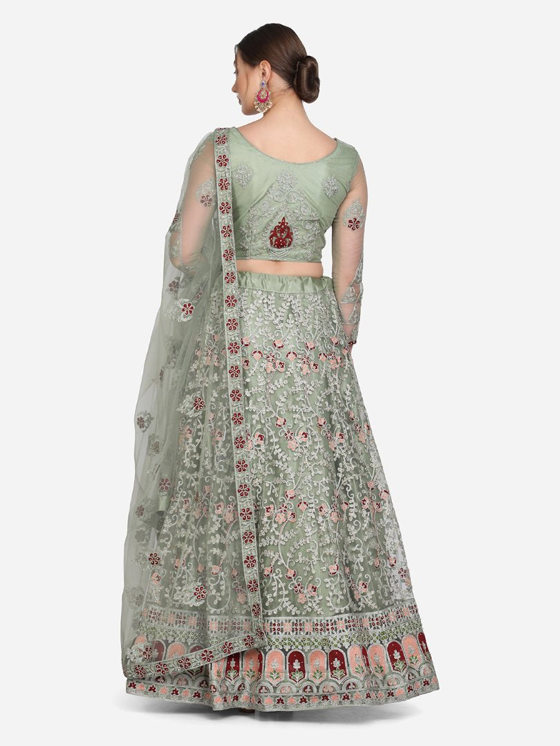 This beautiful net lehenga choli is the epitome of elegance, perfect for festivals and special occasions. Get this beautiful net thread embroidered lehenga choli online at trendia.co - The best online store for women's lehenga choli.