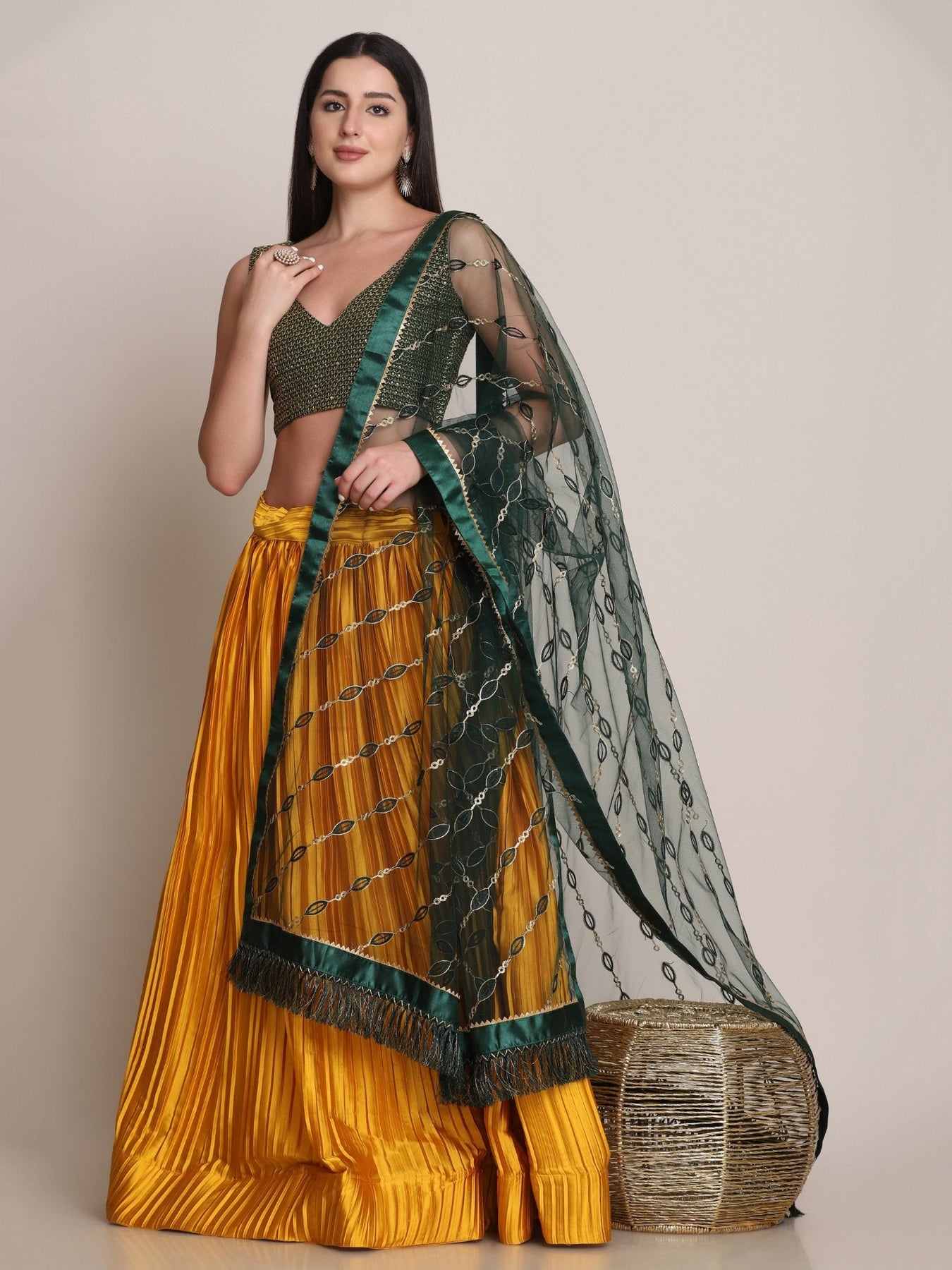 This Beautiful Satin Silk Lehenga Choli Is The Epitome Of Elegance, Perfect For Festivals And Special Occasions. Get This Beautiful Satin Silk Platted Work Lehenga Choli Online At Trendia.Co - The Best Online Store For Women's Lehenga Choli.