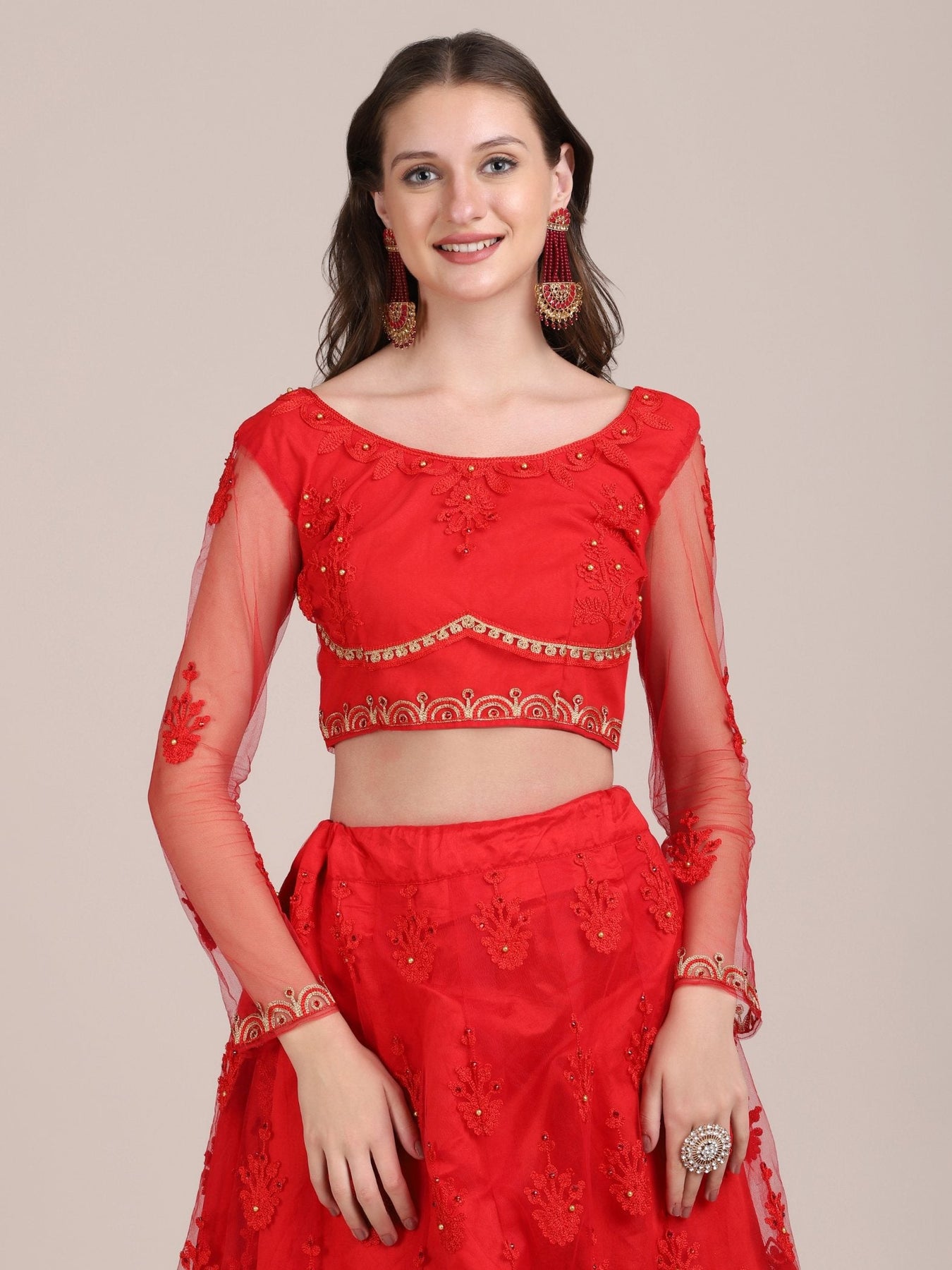 This Beautiful Net Lehenga Choli Is The Epitome Of Elegance, Perfect For Festivals And Special Occasions. Get This Beautiful Net Thread Embroidered Lehenga Choli Online At Trendia.Co - The Best Online Store For Women's Lehenga Choli.