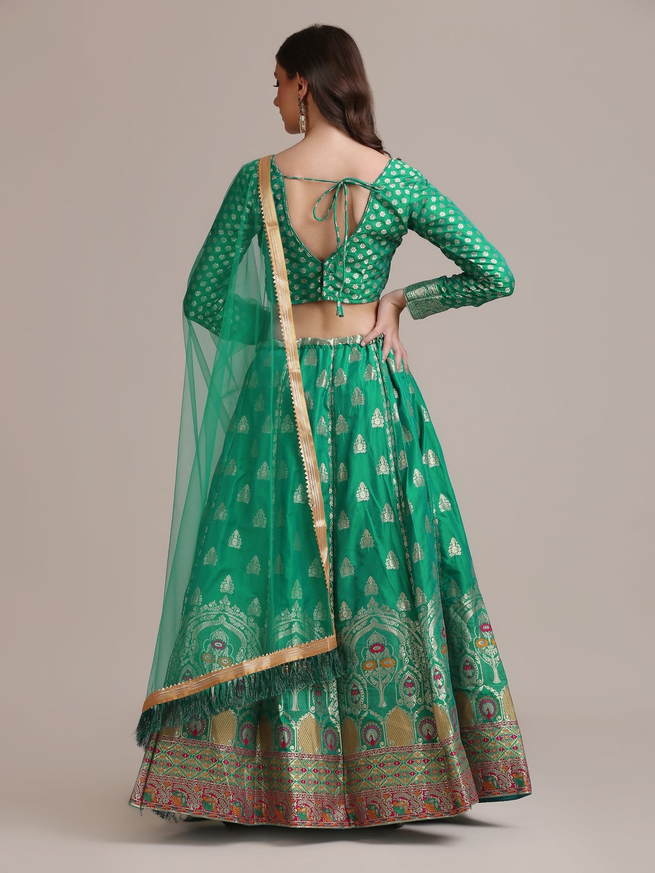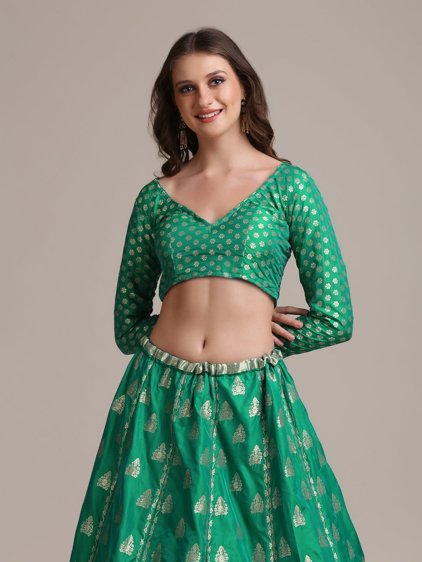 This Beautiful Jacquard Silk Lehenga Choli Is The Epitome Of Elegance, Perfect For Festivals And Special Occasions. Get This Beautiful Jacquard Silk Gold Woven Work Lehenga Choli Online At Trendia.Co - The Best Online Store For Women's Lehenga Choli.