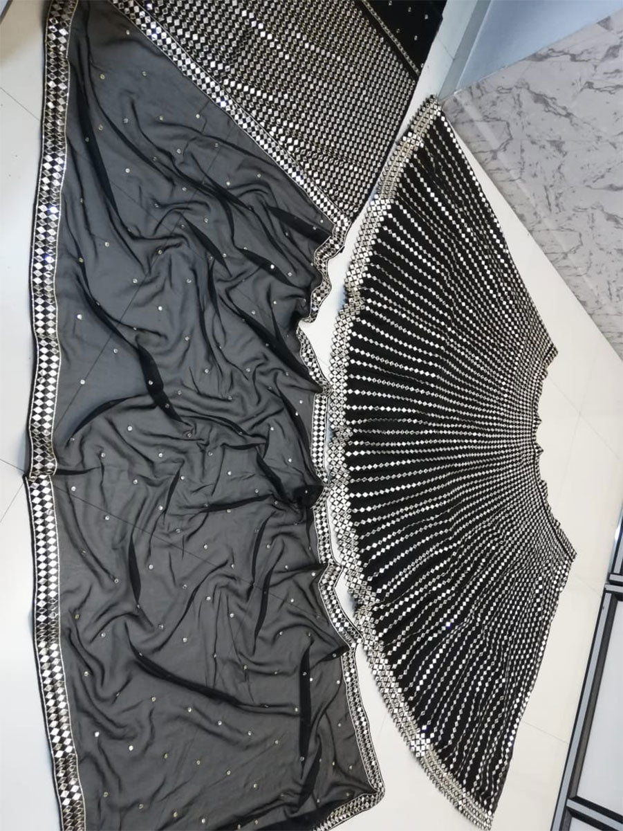 Women's Black Organza Silk Embroidered Lehenga Set