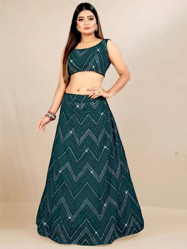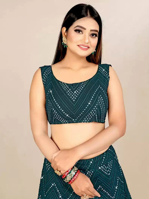 Women's Classy Bottle Green Georgette 3Mm Sequins With Thread Embroidery Semi-Stitched Lehenga Choli Set