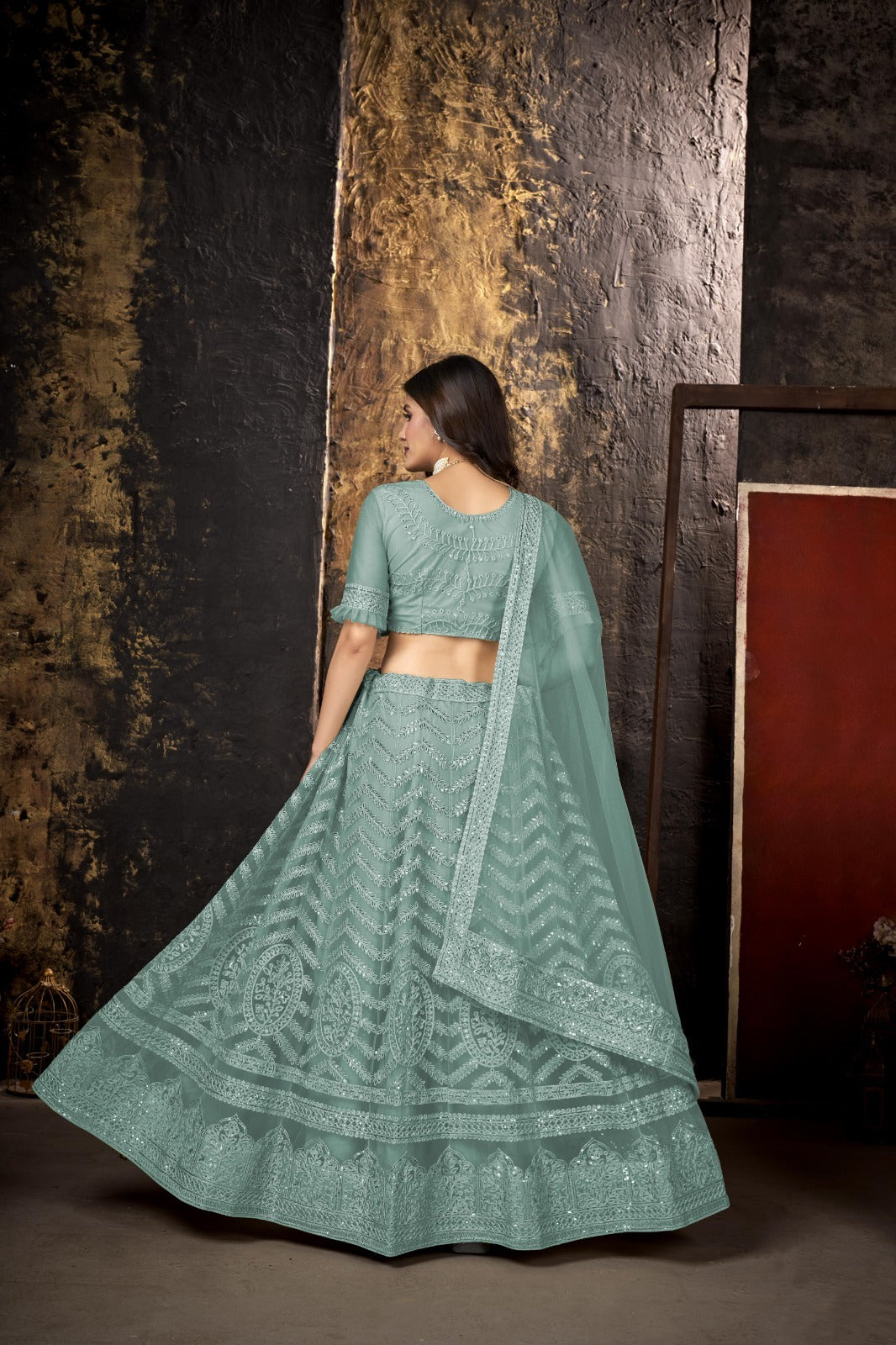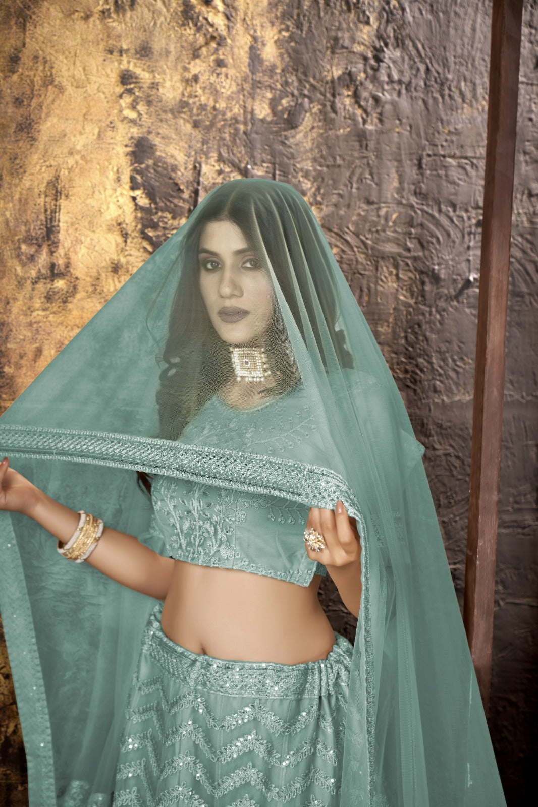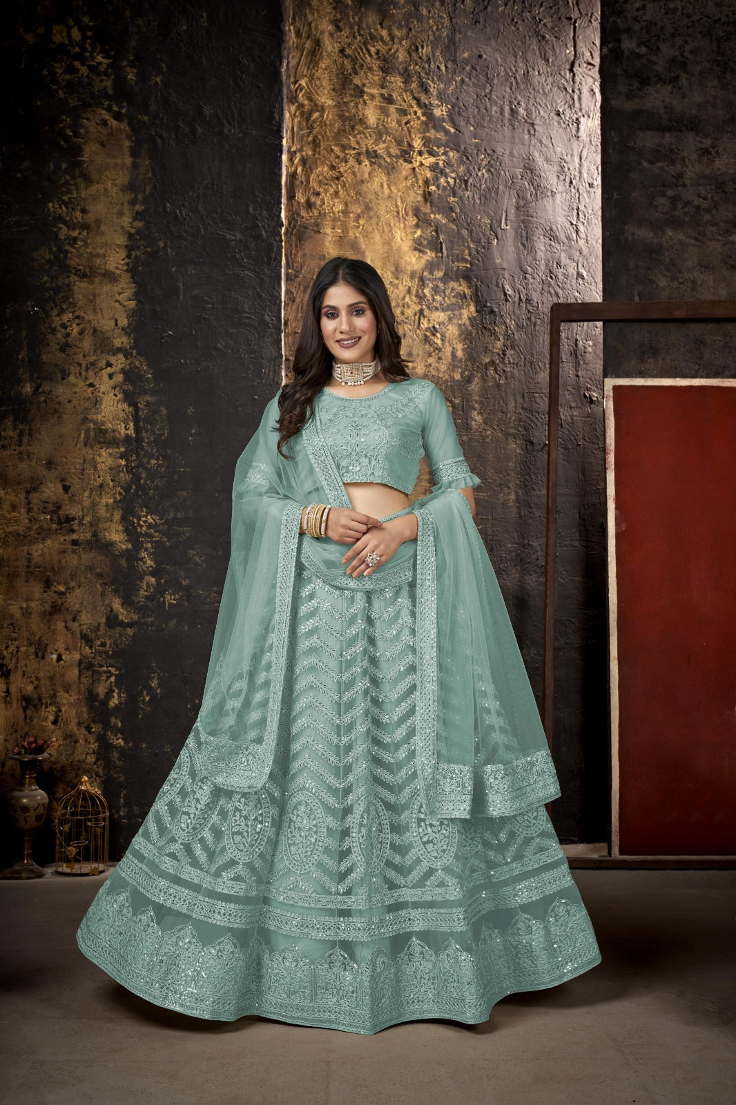Wedding Wear Designer Sky Blue Lehengha Choli Collection