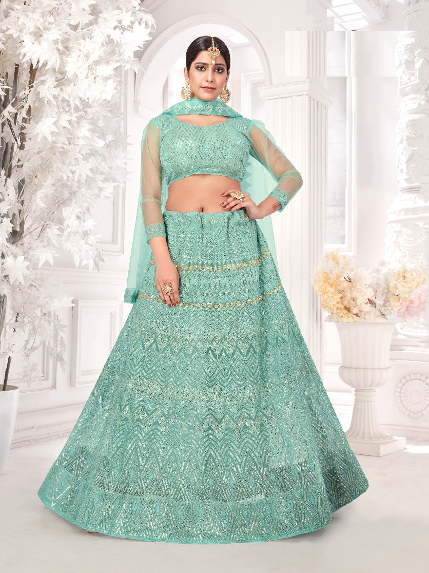 Wedding Wear Designer Green Lehengha Choli Collection