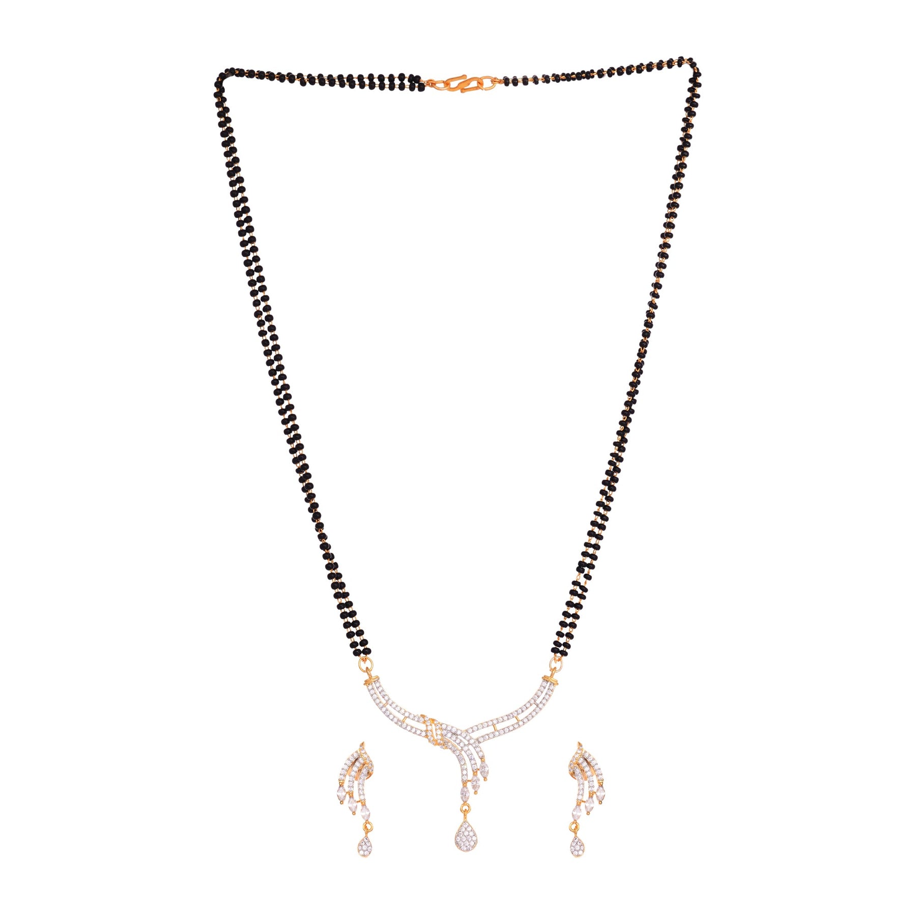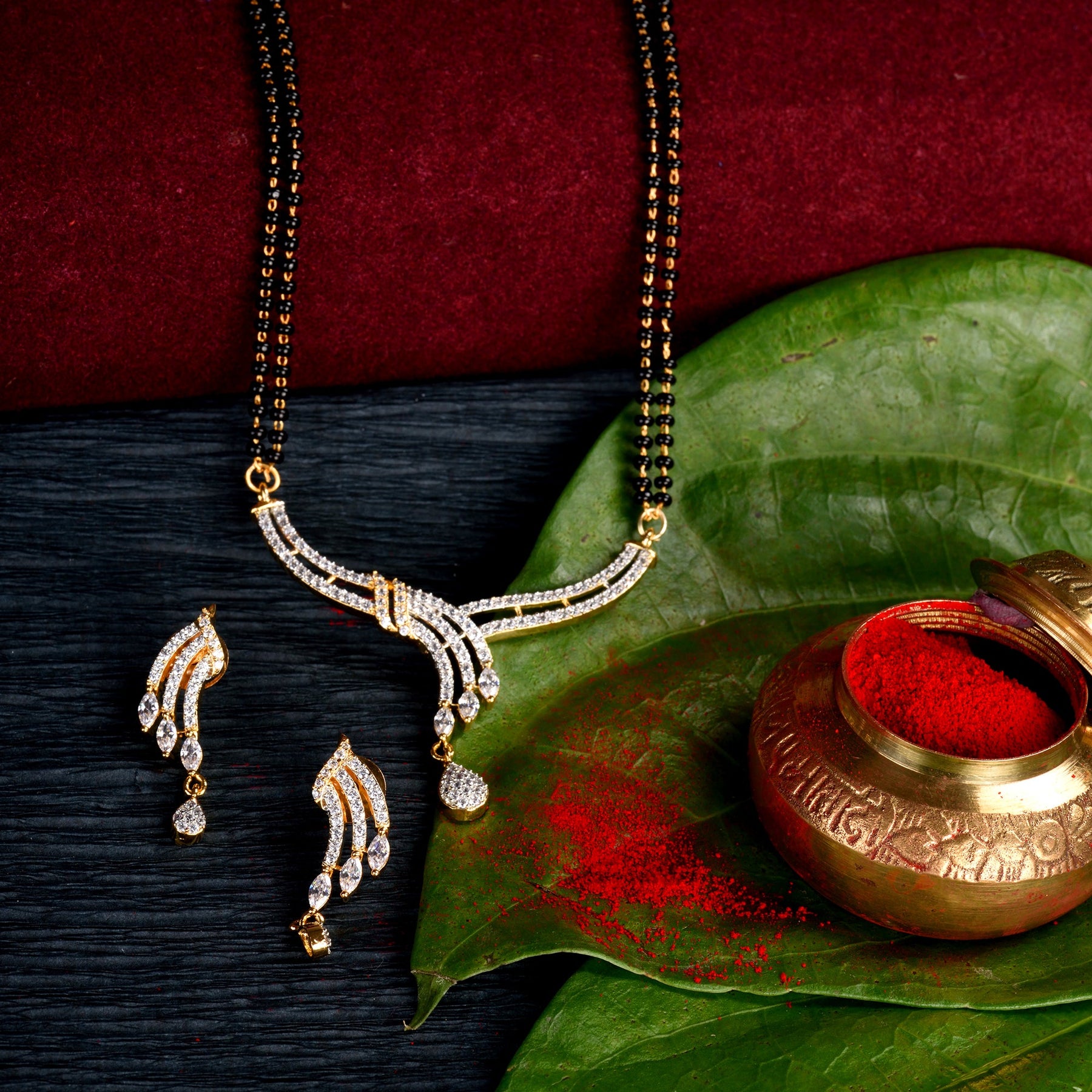 Women's Gold Dual Toned White Ad Studded Contemporary Mangalsutra Set