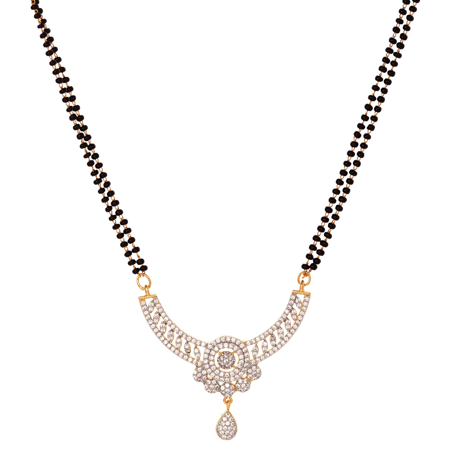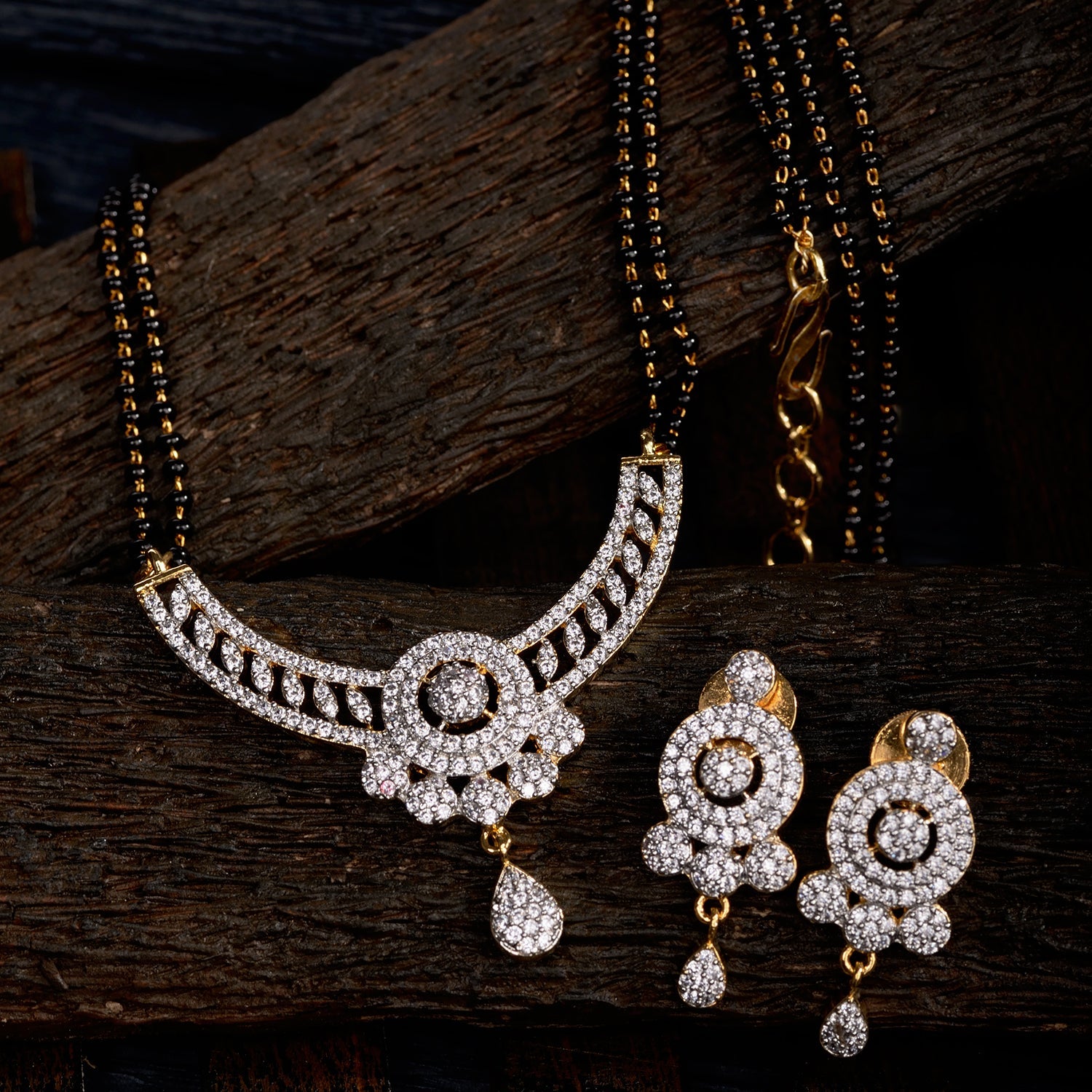 Women's Gold Plated Black & White Ad -Studded & Beaded Mangalsutra With Earrings