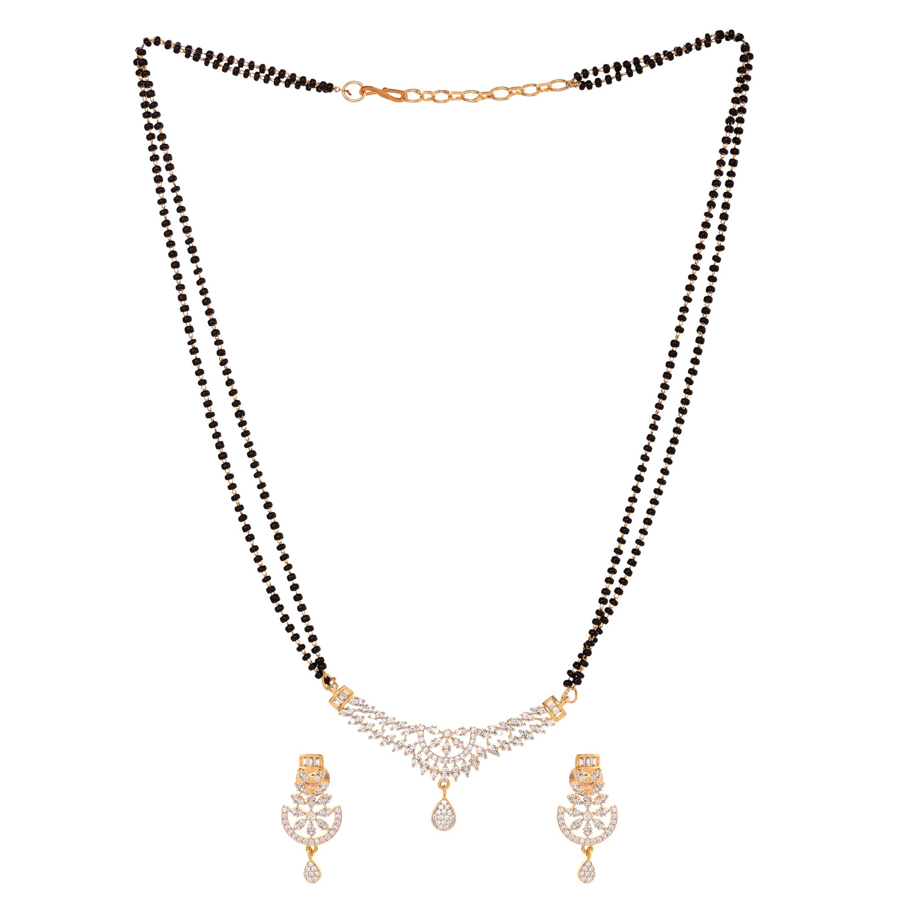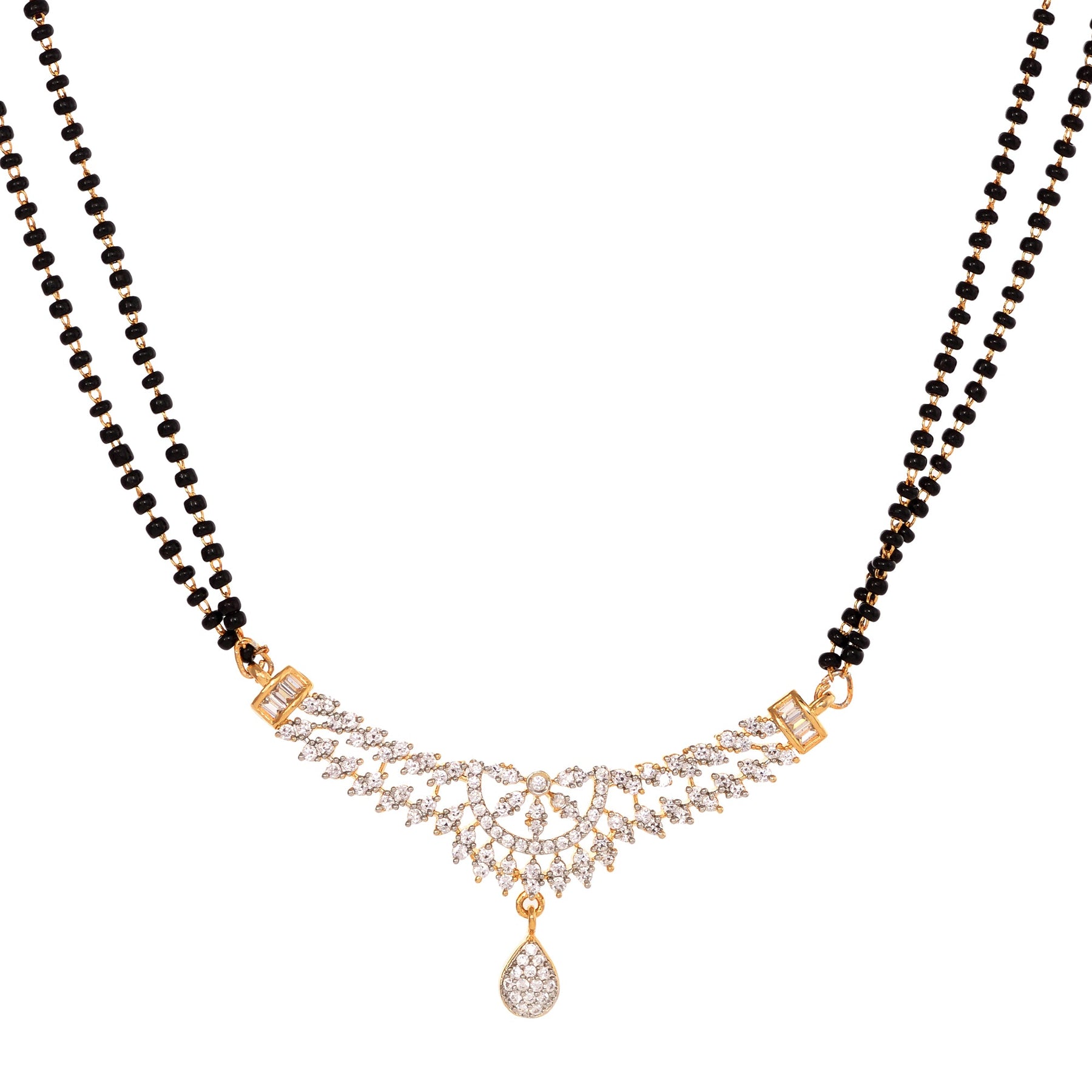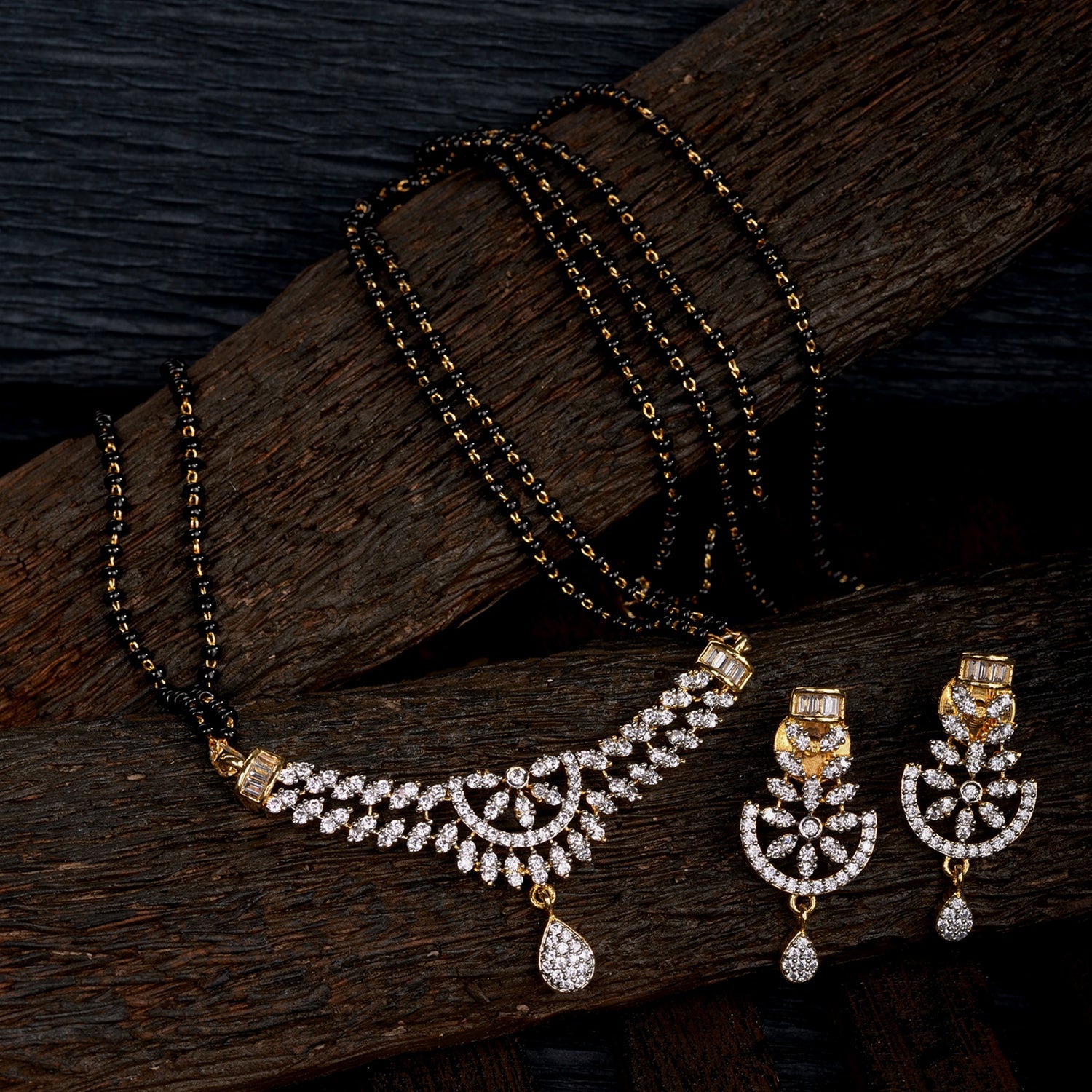 Handcrafted Western & ethnic Rhodium polish studded with Mangalsutra which completes your traditional look. The Pandent will go well with traditional or festive wear like Sarees, Anarkalis, Lehenga cholis & Salwar suites. This beautiful Handcrafted Mangalsutra set will fetch you lots of compliments & enhance your persona. The array of jewelry we present is the perfect blend of tradition and modernity that looks sophisticated yet conventional. A perfect gift on the occasions like Wedding, Ring ceremony, Engagement, Festival, Valentine's Day, Birthdays. Our Jewellery are made with high quality allergy free material. Wear it with your ethnic or party ensembles and keep your hair swept back for a glamorous look. This jewellery set consists of a Necklace and a pair of earrings. It is advisable to store Jewellery in a Jewellery pouch or in Jewellery organizer box. Keep away from chemicals, water and direct sunlight. Clean it with a dry and soft cloth or cotton.