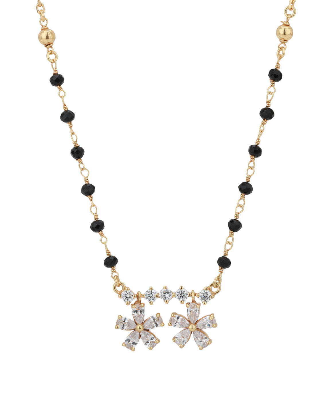 Women's Black Gold-Plated Cz-Studded Artificial Beaded Mangalsutra