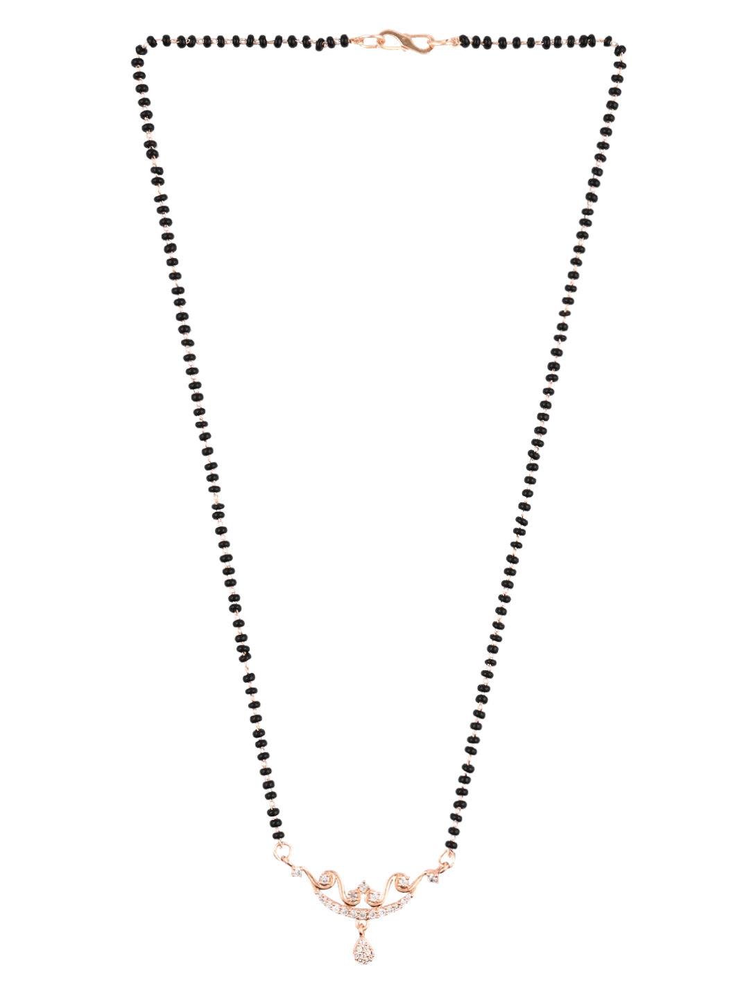 Women's 18K Rose Gold Plated Traditional Single Line American Diamond Pendant With Black Bead Chain Mangalsutra