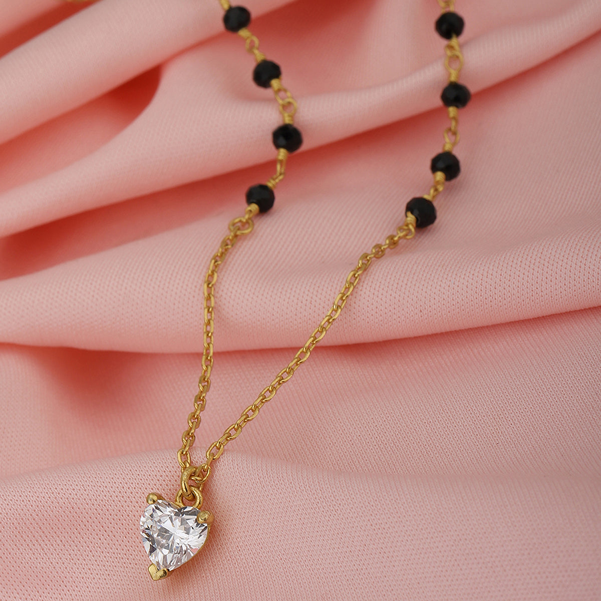 Carlton London Gold-Plated Black Crystal Studded Mangalsuta