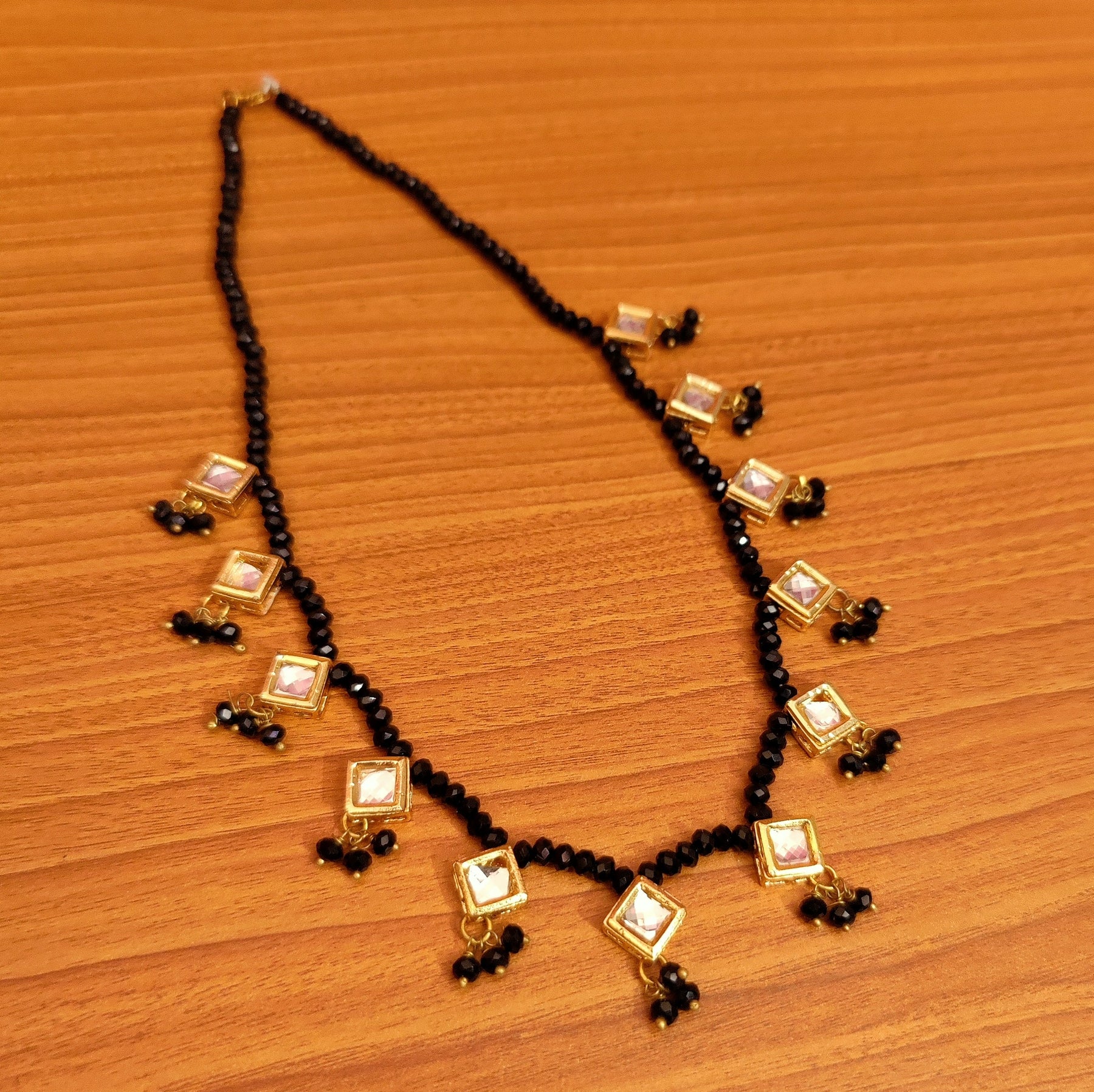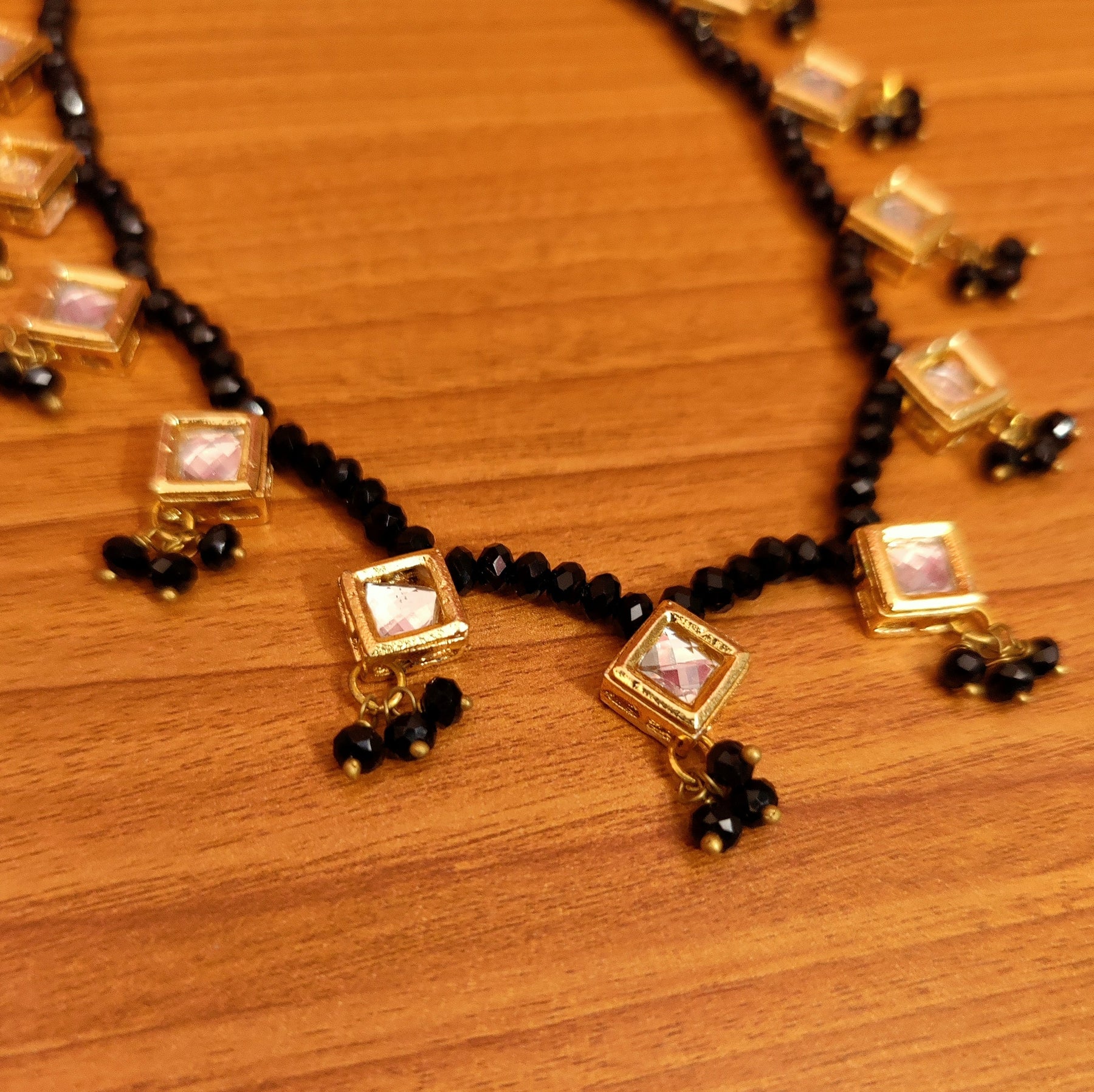 This Beautiful Mangalsutra Is Handcrafted In Brass Alloy With Imitation Black Crystal Beads & Kundan Work Of Very Fine Quality , This Mangalsutra Is Coated With 18 Kt Nickle Free Gold Plating To Avoid Skin Allergies And Its Very Light In Weight .