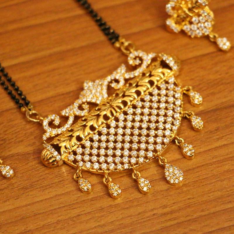 This Diamond Look Mangalsutra Is Handcrafted In Silver Alloy With Imitation Cz Stones Of Very Fine Quality , The Mangalsutra Is Very Light In Weight And Plated With 18Kt Gold Rhodium To Give It A Real Diamond Look.
