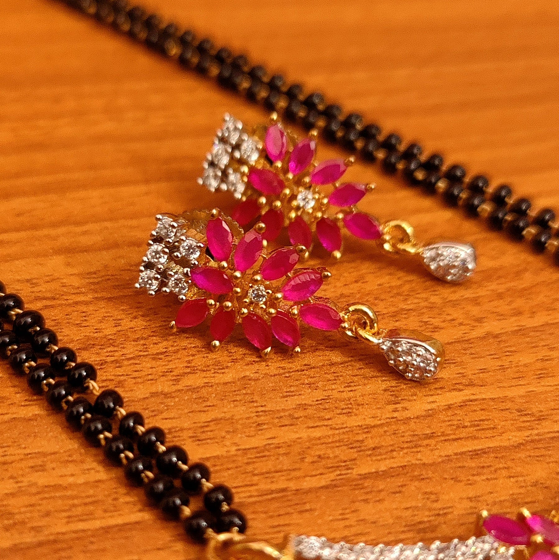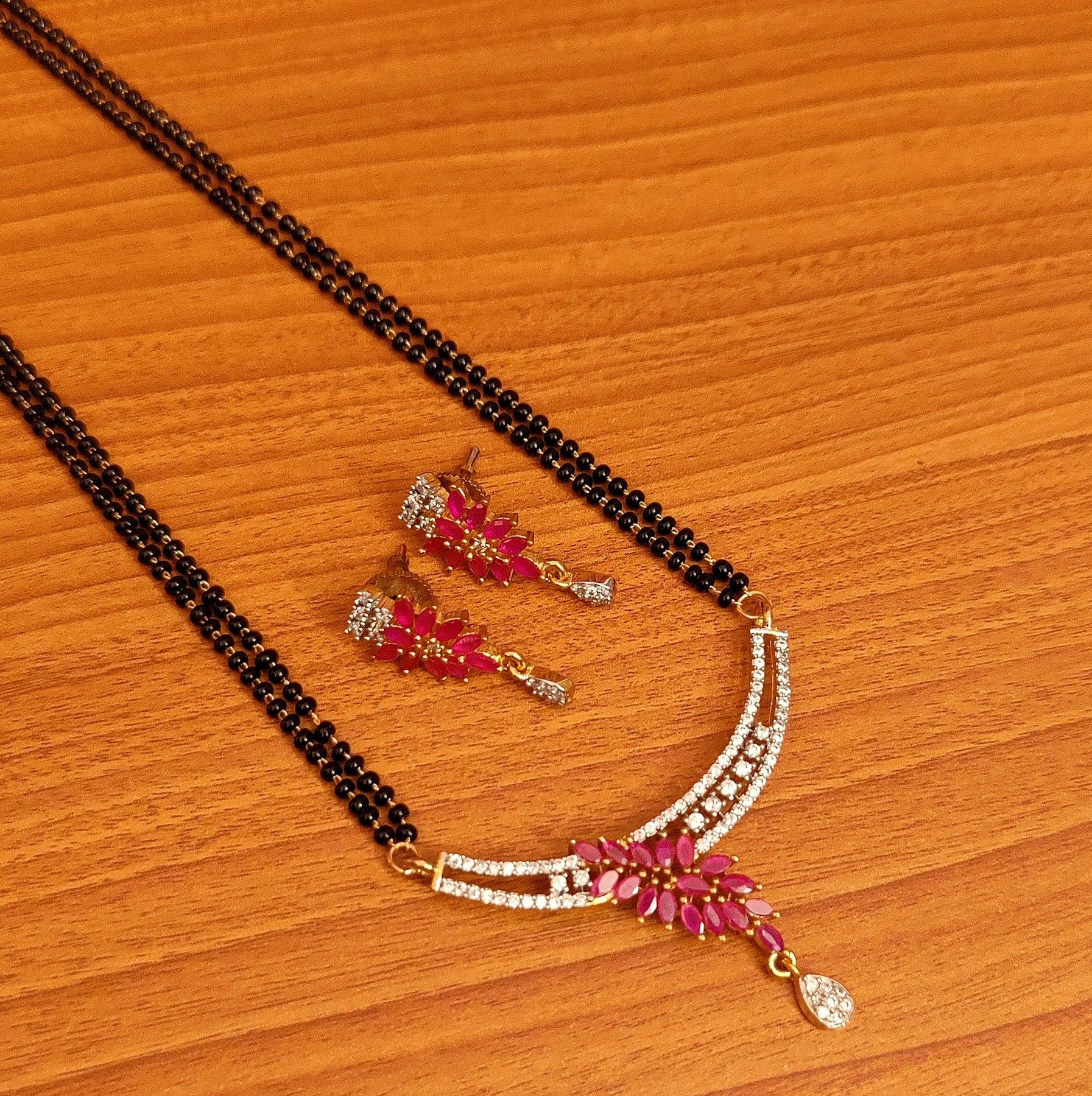 This Beautiful Mangalsutra Is Handcrafted In Brass Alloy With Imitation Red Colour Stone & Cz Stone Of Very Fine Quality , This Mangalsutra Is Coated With 18 Kt Nickle Free Gold Plating To Avoid Skin Allergies And Its Very Light In Weight .