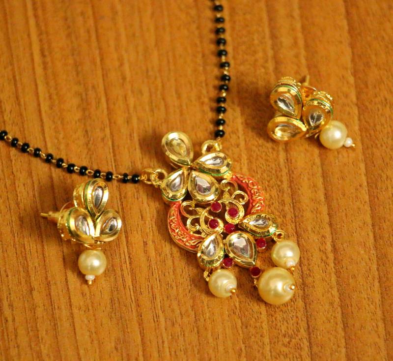 This Beautiful Mangalsutra Is Handcrafted In Brass Alloy With Imitation Pearl & Kundan With Meenakari Work Of Very Fine Quality . This Mangalsutra Is Coated With 18 Kt Gold Polish Which Give Them A Unique Look . An Absolutely Stunning Piece To Own And Are Very Light In Weight.