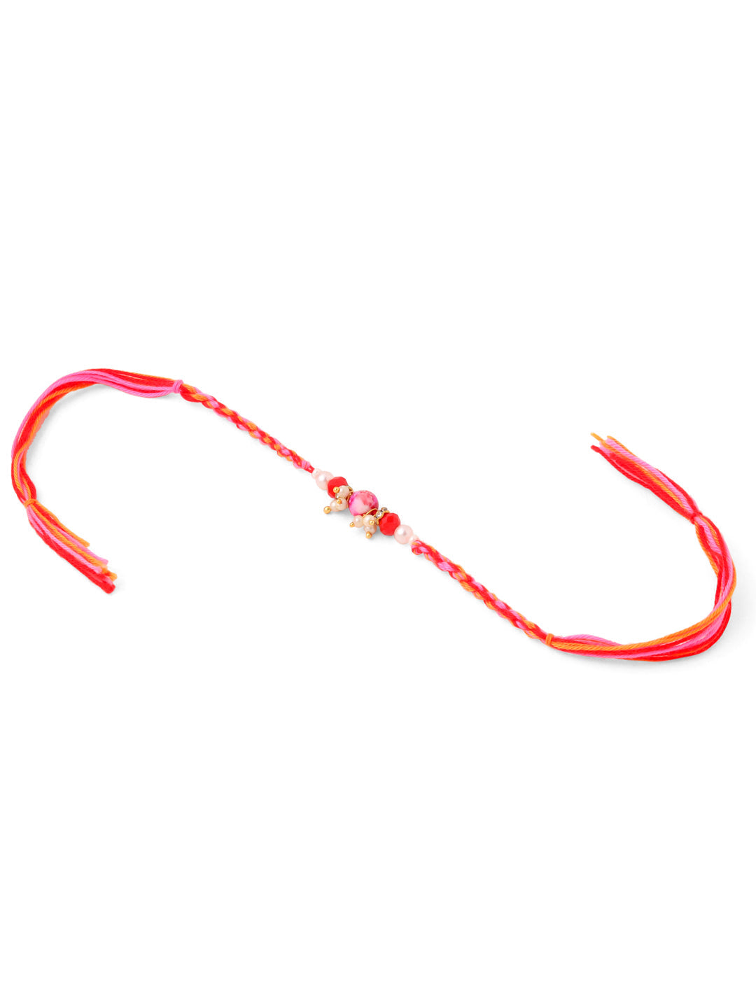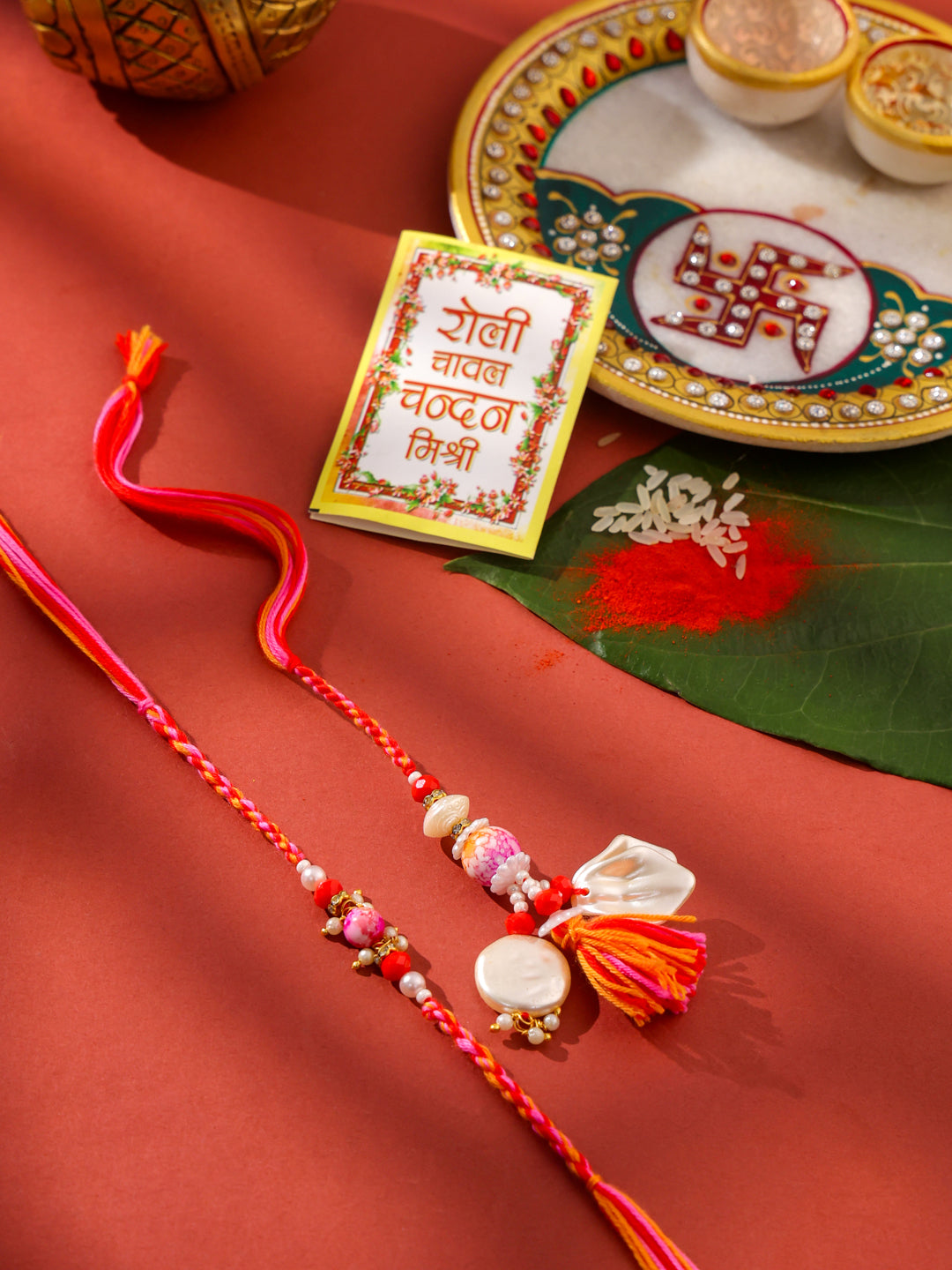 Style Note: Add A Touch Of Elegance And Festive Charm To Your Raksha Bandhan Celebrations With The Nvr Set Of 2 Multicolor Artificial Stones & Beads Bhaiya Bhabhi Rakhi. Designed To Celebrate The Unique Bond Between Siblings And Their Spouses, This Set Includes One Rakhi For Bhaiya And One For Bhabhi, Each Beautifully Adorned With Artificial Stones And Beads. The Intricate Design Combines Traditional Symbolism With A Modern Aesthetic, Making It A Perfect Choice For Those Who Want To Make This Raksha Bandhan Extra Special. The Adjustable Threads Ensure A Comfortable Fit For All Wrist Sizes, While The Inclusion Of Roli, Chawal, Chandan & Mishri Adds Authenticity To Your Rakhi Ceremony. This Set Is A Heartfelt And Stylish Gift, Ideal For Expressing Love, Blessings, And Protection For Both Your Brother And Sister-In-Law.