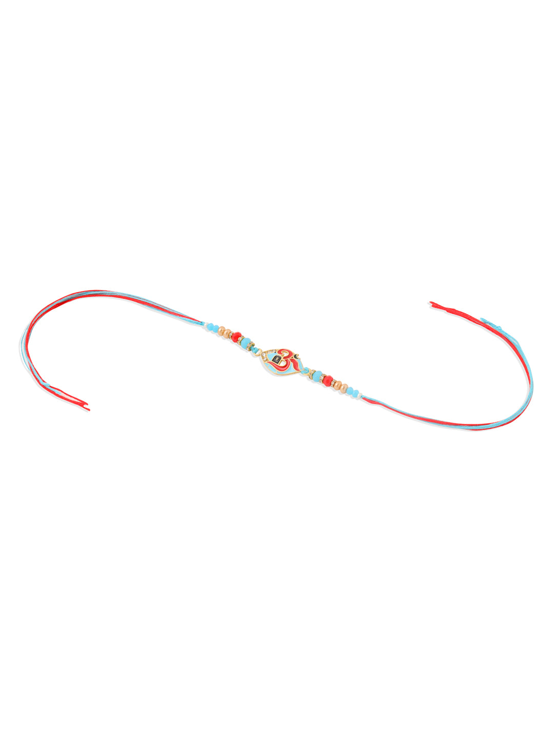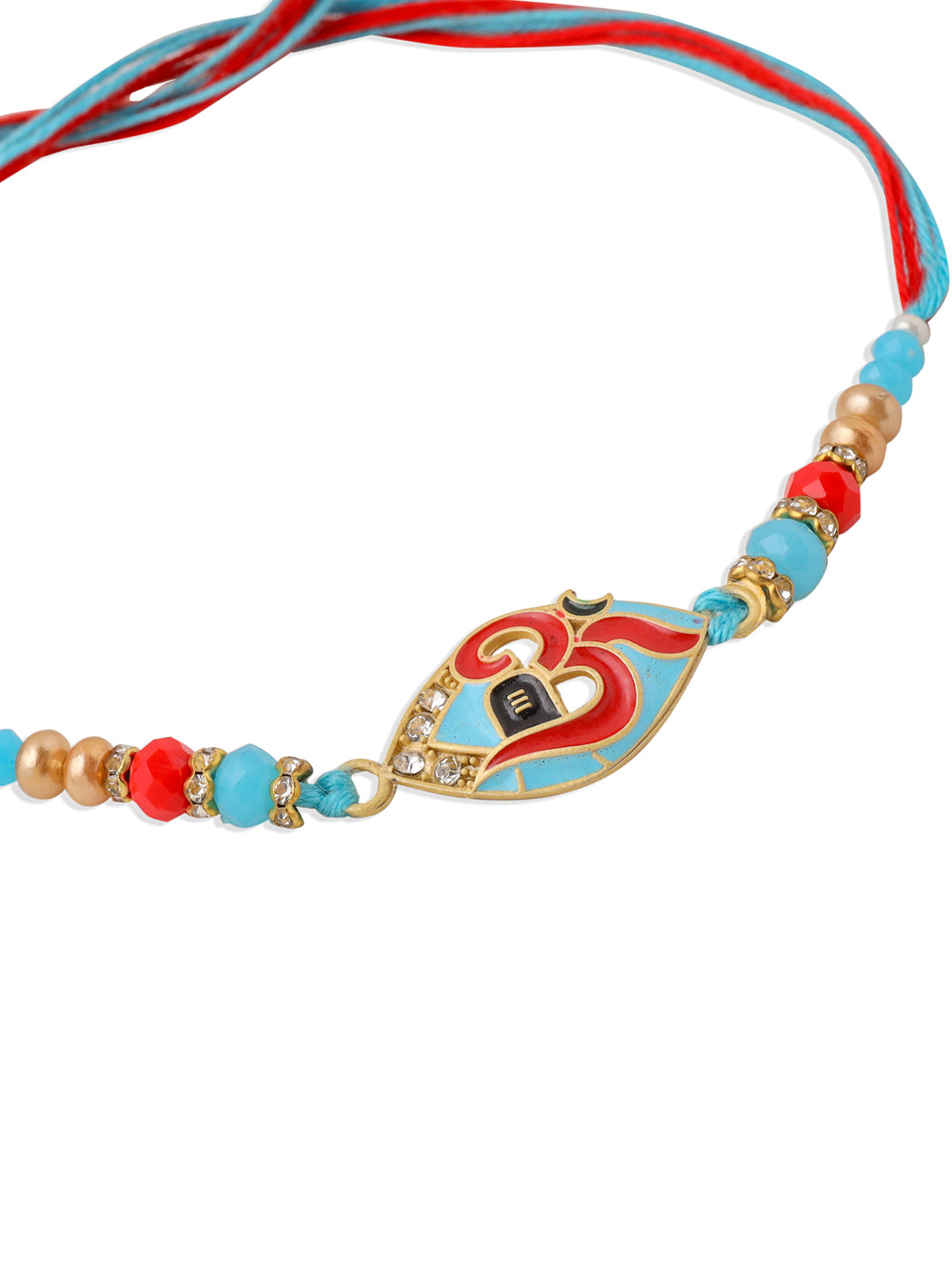 Style Note: Celebrate Raksha Bandhan With The Nvr Men Red & Blue Artificial Stones And Beads Om Thread Rakhi. Featuring A Beautiful Om Symbol, This Rakhi Is Adorned With Artificial Stones And Beads, Offering A Blend Of Tradition And Style. The Om Symbol Brings Blessings, Peace, And Positivity For Your Bhaiya. The Adjustable Thread Ensures A Comfortable Fit For All Wrist Sizes. Complete With Roli, Chawal, Chandan & Mishri, This Set Allows You To Perform The Traditional Raksha Bandhan Rituals. A Meaningful And Thoughtful Gift That Expresses Love, Protection, And Well-Wishes.