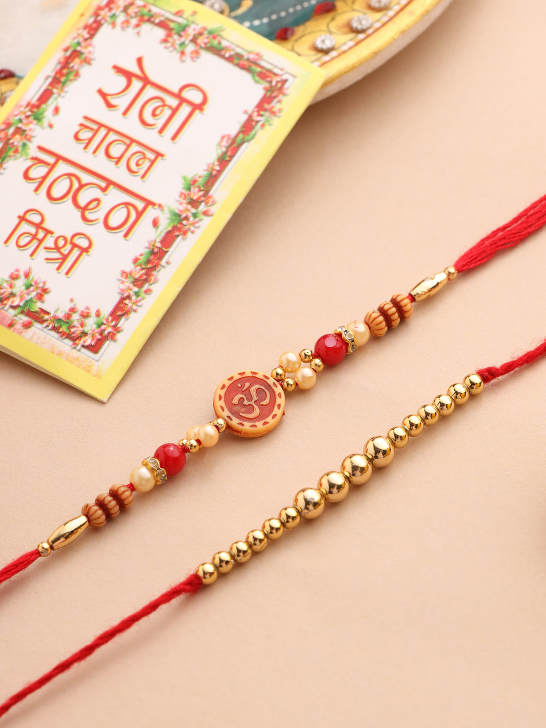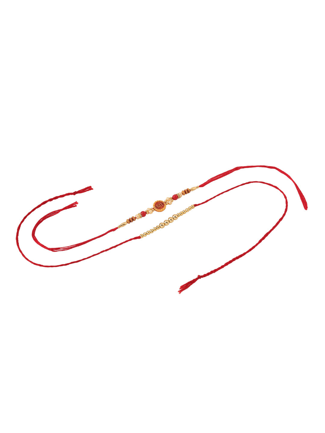 Style Note: Celebrate Raksha Bandhan With Devotion And Tradition With The Nvr Men’S Set Of 2 Red Religious Thread Rakhis. Designed With A Deep Red Thread, A Color Symbolizing Strength And Protection, These Rakhis Embody The Sacred Connection Between Brothers And Sisters. The Religious Motifs Add A Spiritual Touch, Making These Rakhis The Perfect Choice For Those Who Appreciate The Cultural And Sacred Significance Of The Occasion. Complete With Roli, Chawal, Chandan, And Mishri, This Set Is The Ideal Way To Honor Your Brother’S Love And Protection While Staying True To The Traditional Customs Of Raksha Bandhan.