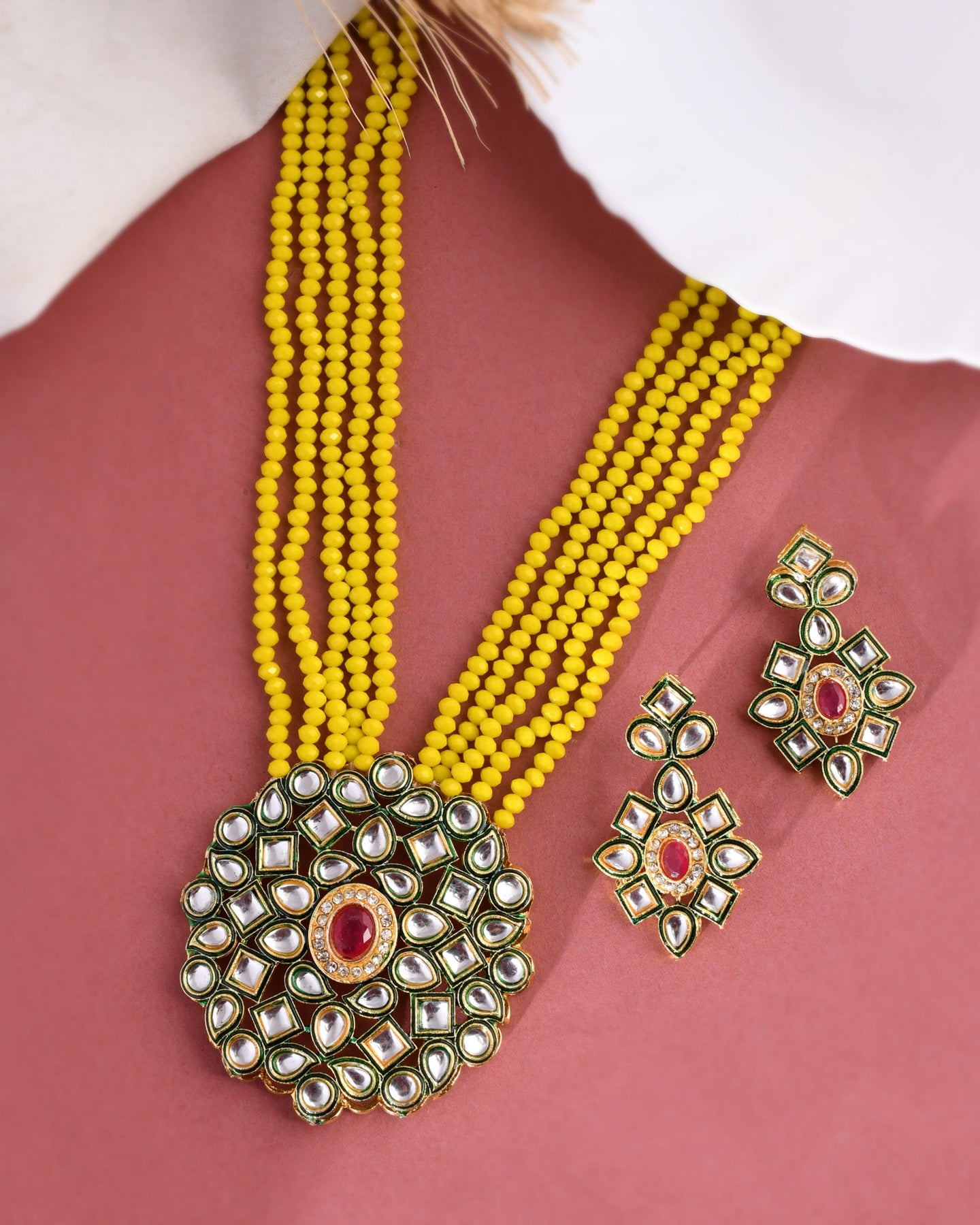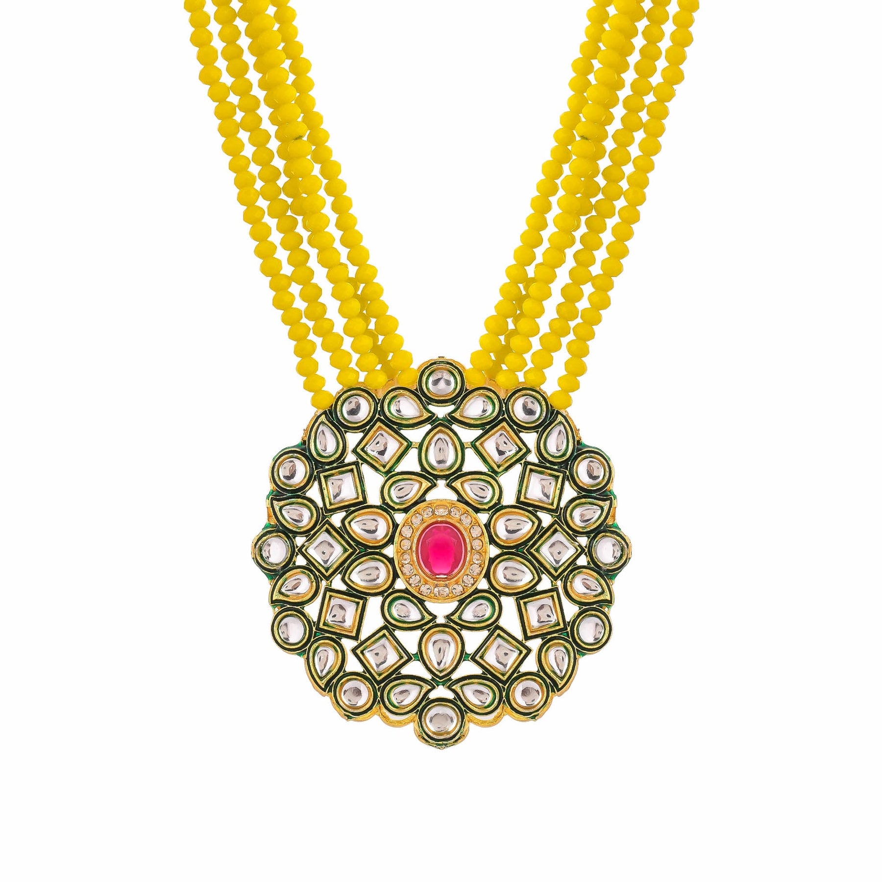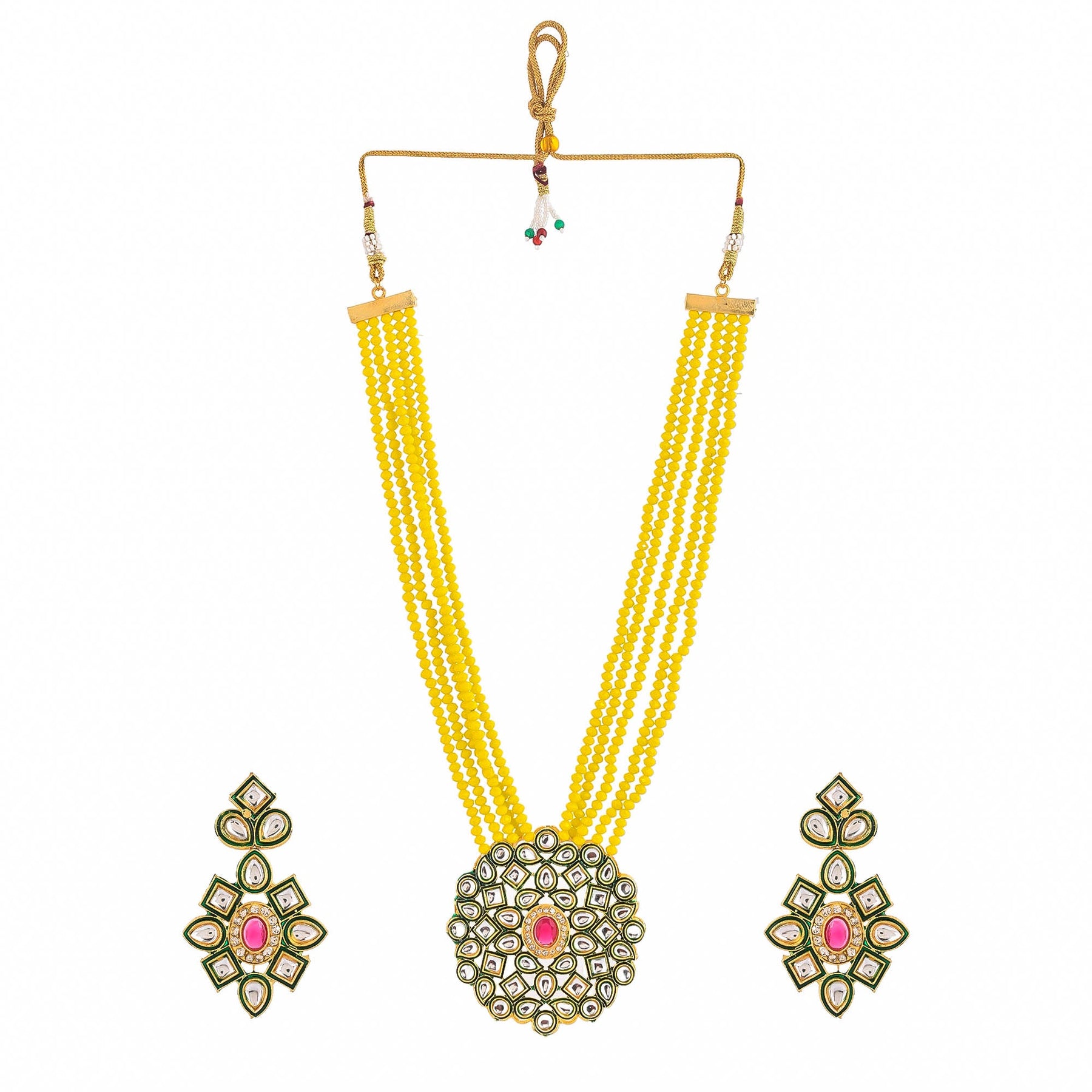 Women's Shine Beads Ethnic Kundan Polki Necklace With Earring Set