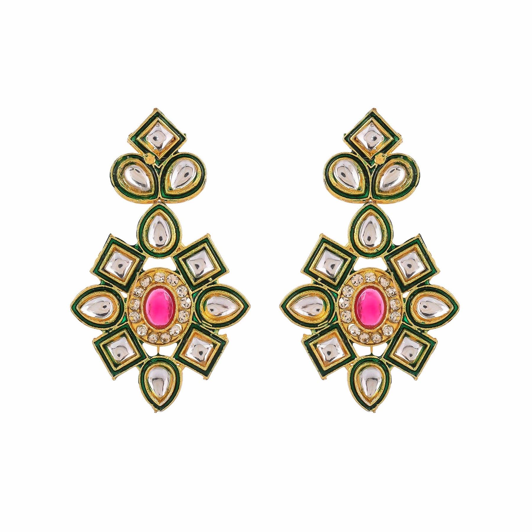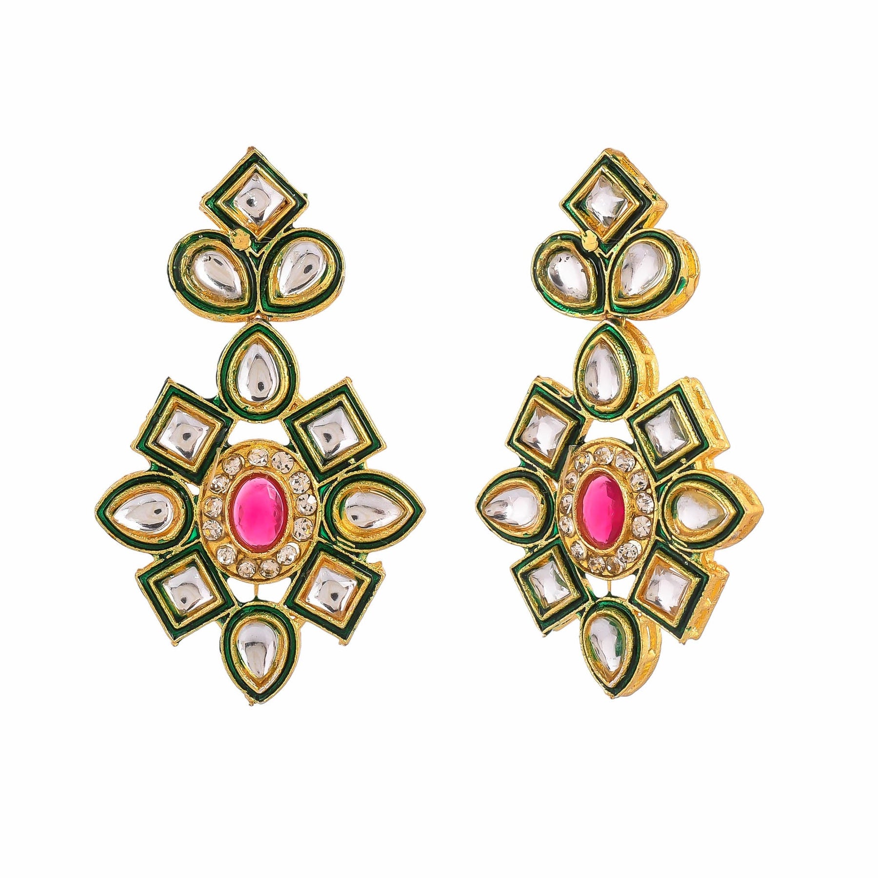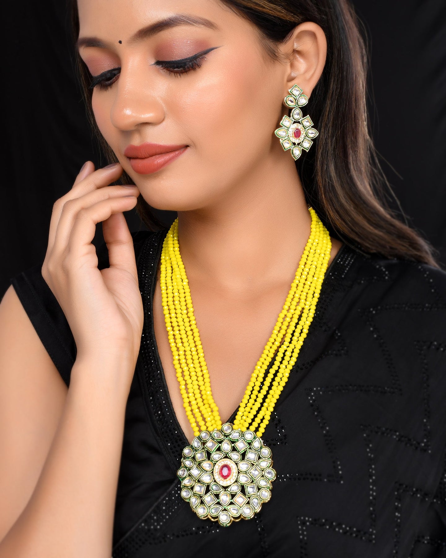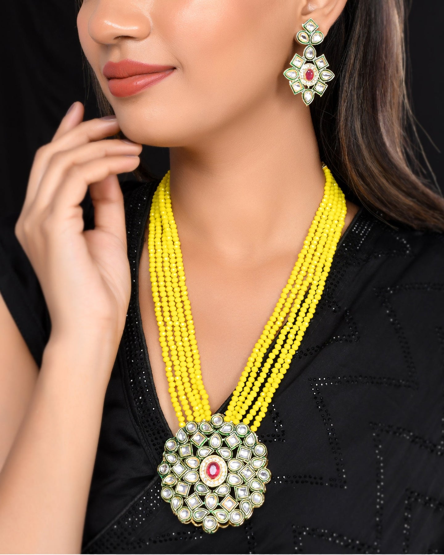 Women's Shine Beads Ethnic Kundan Polki Necklace With Earring Set