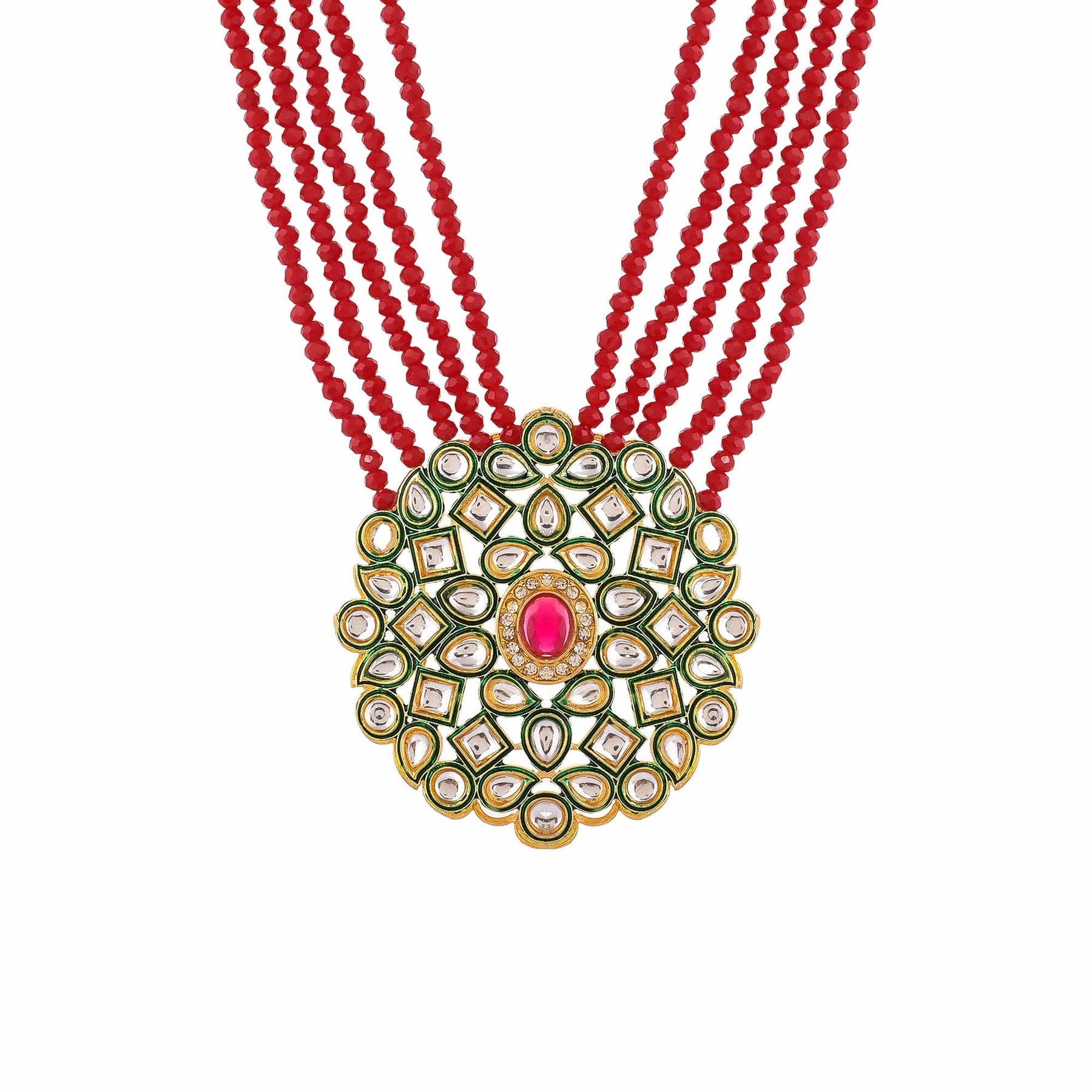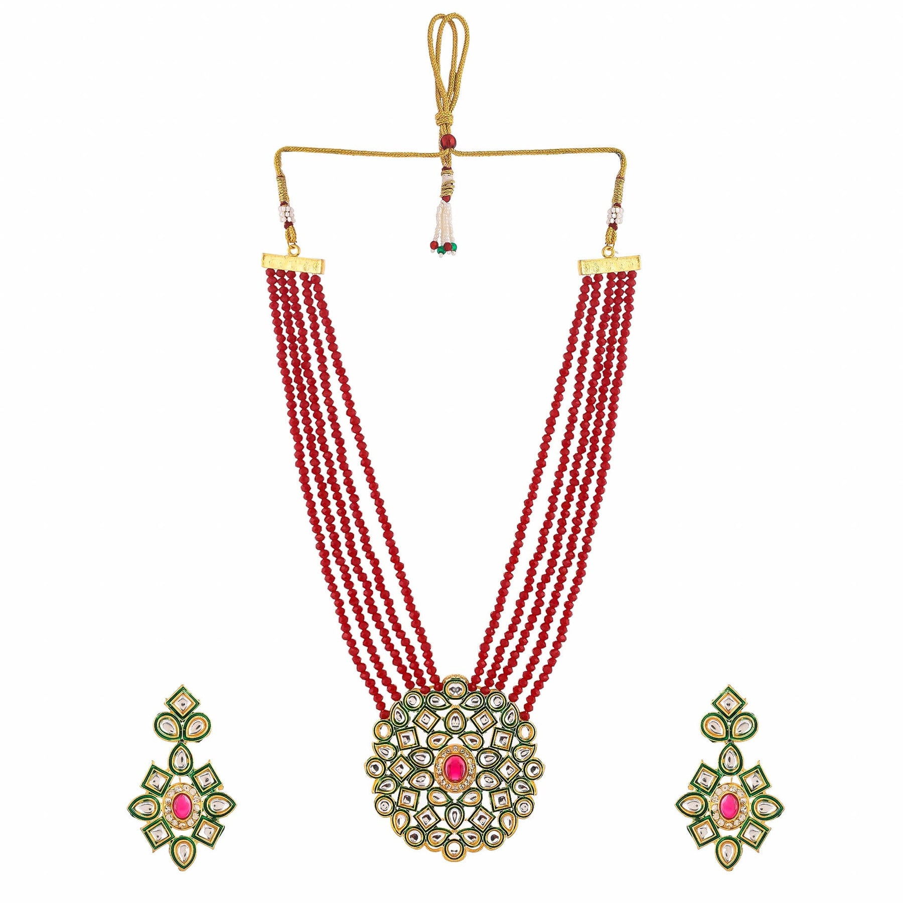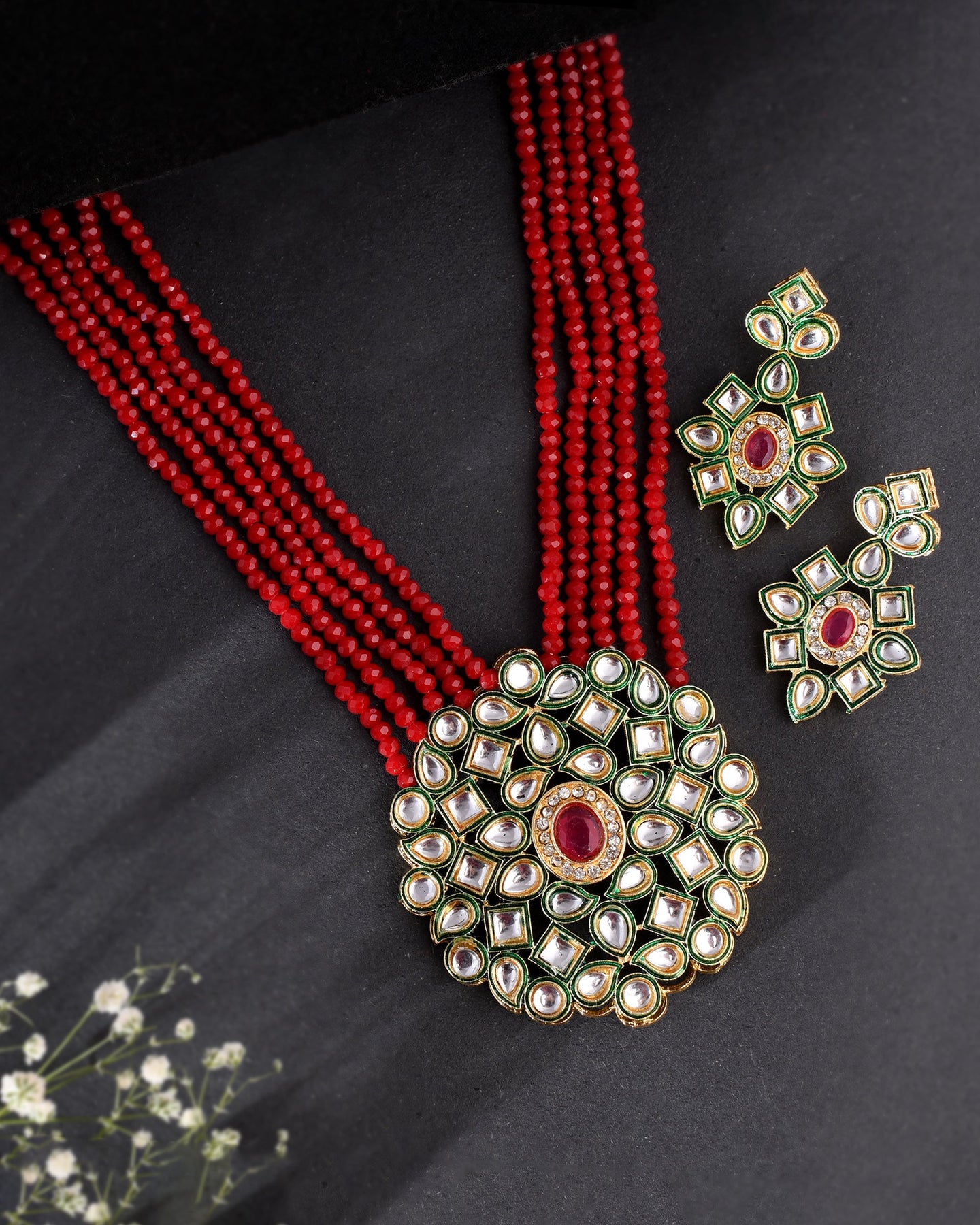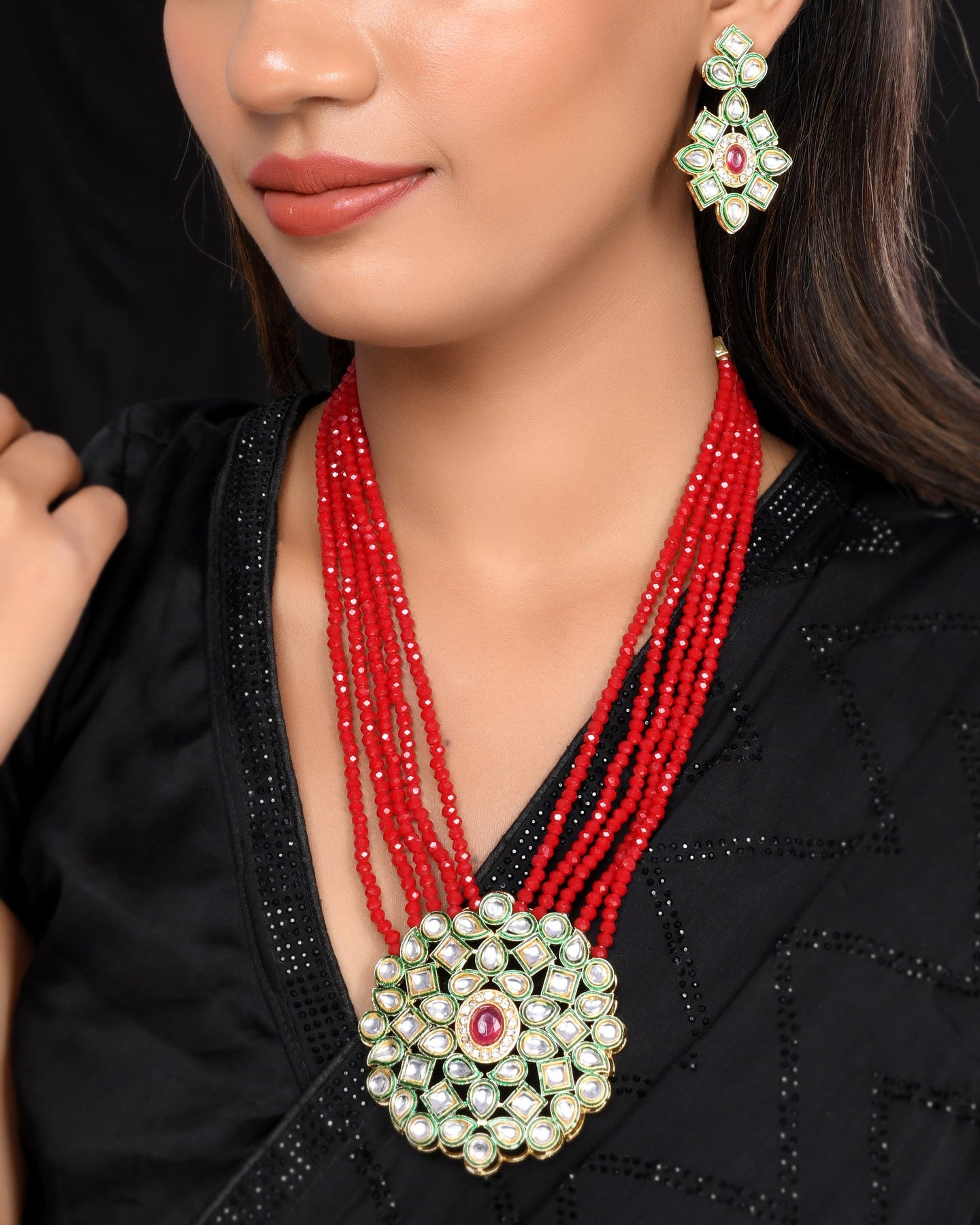 This handmade layered necklace set comes with two pretty matching pairs of designer earrings for women.