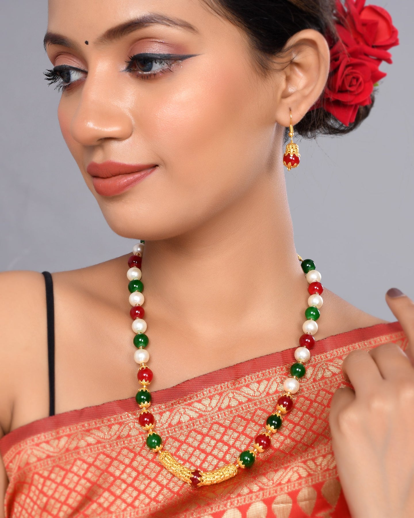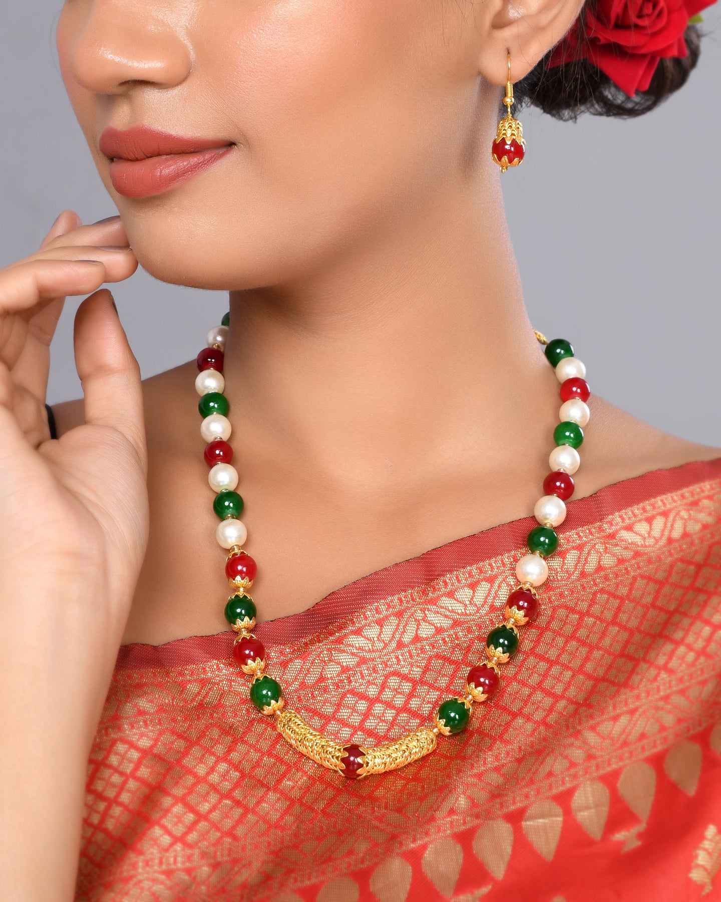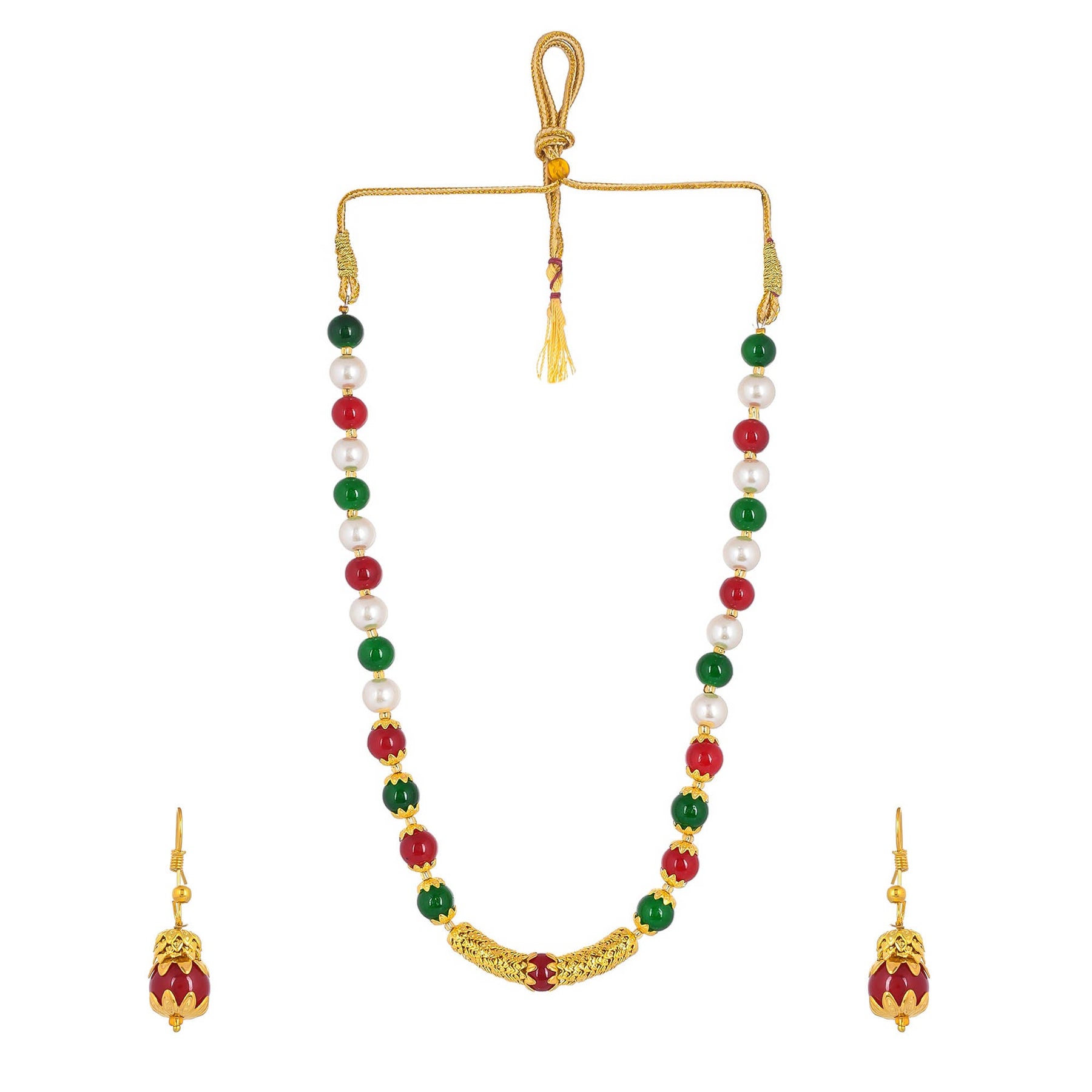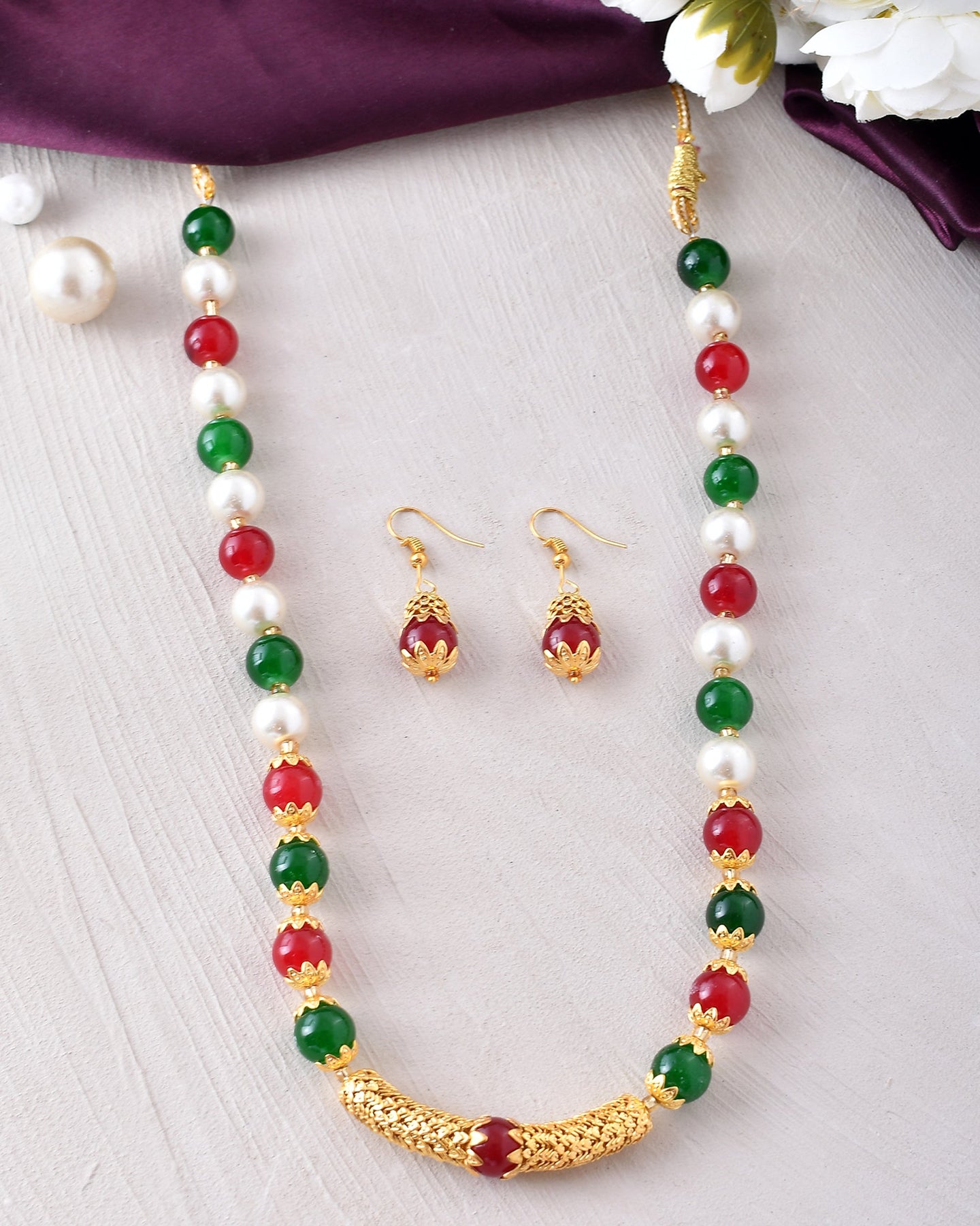 This Necklace Set With Earrings For Women Is Made Of Stone Beads And Silken Thread, Which Is Durable And Long-Lasting.