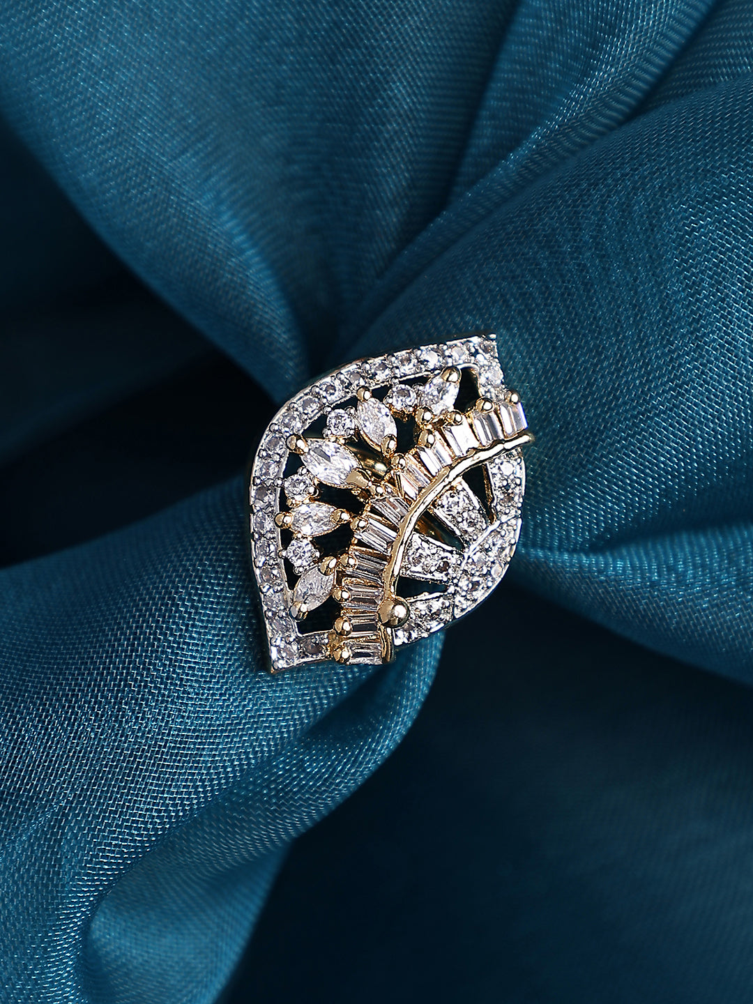 Gold Plated White American Diamond Studded Adjustable Cocktail Ring, Closure: Adjustable, Stone: American Diamond, Type: Cocktail Ring