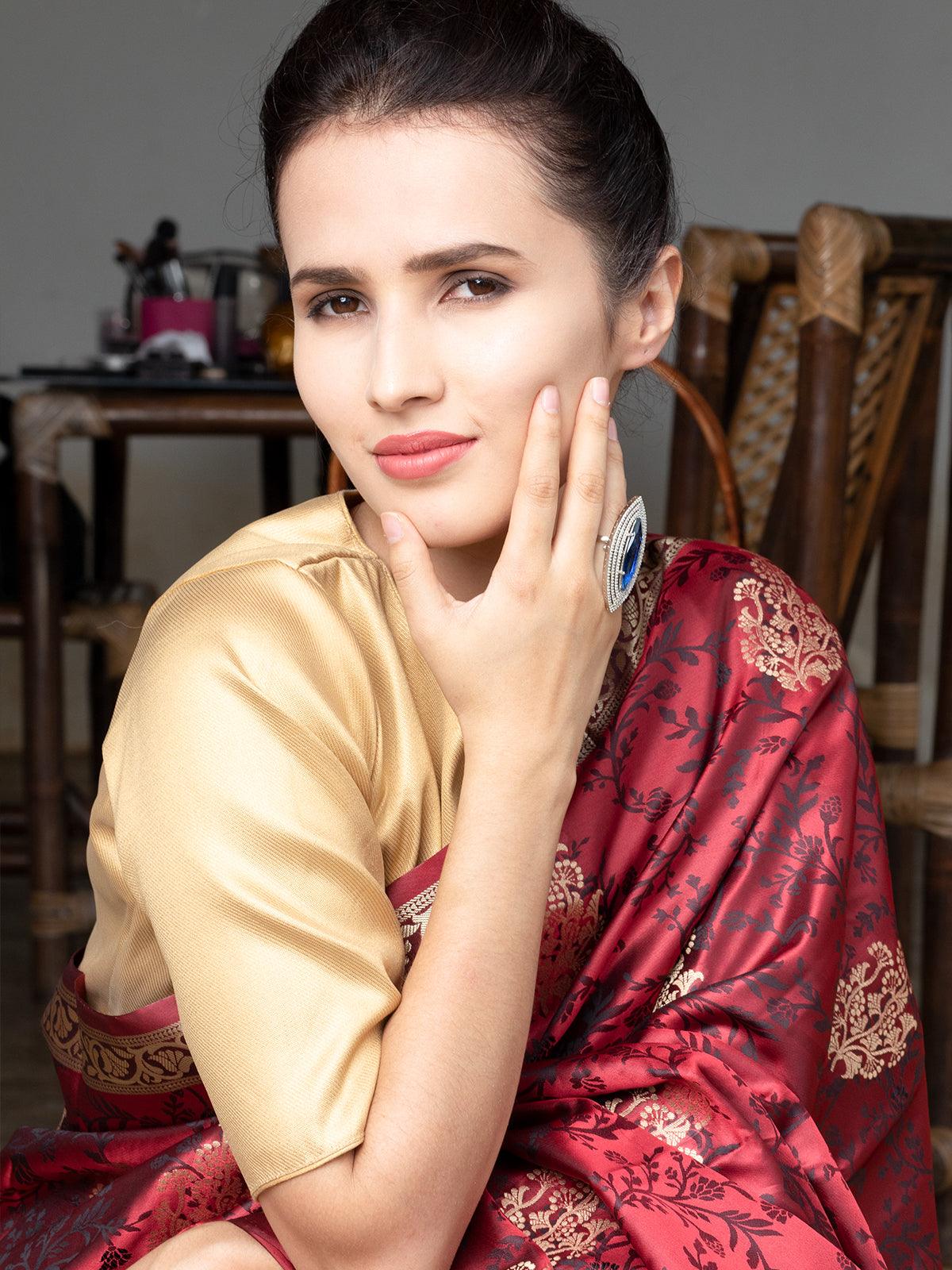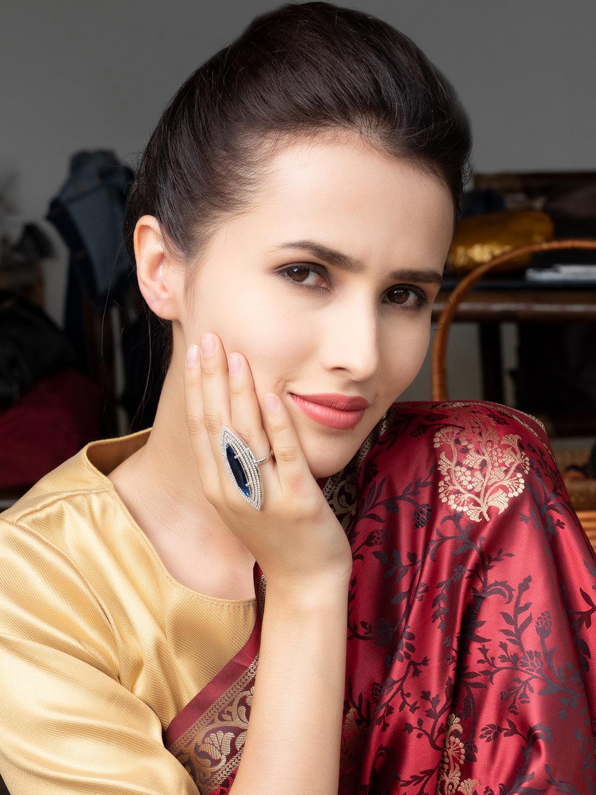 - Presenting this sparkling teardrop finger ring with a dark blue gemstone embedded in the centre.