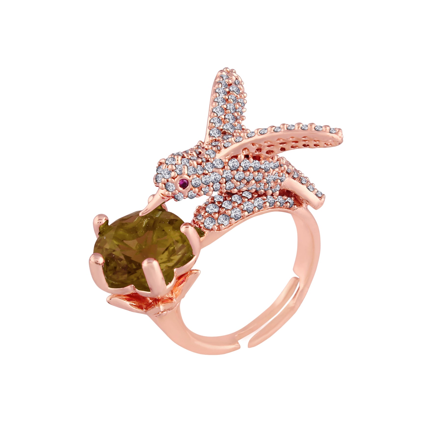 The Elegant Cz American Diamond Adjustable Ring Is A Type Of Jewelry That Features A Sparkling Cubic Zirconia (Cz) Stone Designed To Look Like A Diamond. The Ring Is Adjustable, Meaning It Can Be Resized To Fit A Range Of Finger Sizes. Cz Is A Synthetic Stone That Is Often Used As A Diamond Alternative Due To Its Similar Appearance And Affordability. This Makes The Elegant Cz American Diamond Adjustable Ring A Popular Choice For Those Who Want The Look Of A Diamond Without The High Cost. The Ring Is Typically Made With A Rose Gold-Plated Band, Which Adds To Its Elegant Appearance. It Is A Versatile Accessory That Can Be Worn For Various Occasions, Such As Formal Events, Weddings, Or Everyday Wear. Overall, The Elegant Cz American Diamond Adjustable Ring Is A Beautiful And Affordable Piece Of Jewelry That Can Add A Touch Of Glamour To Any Outfit.