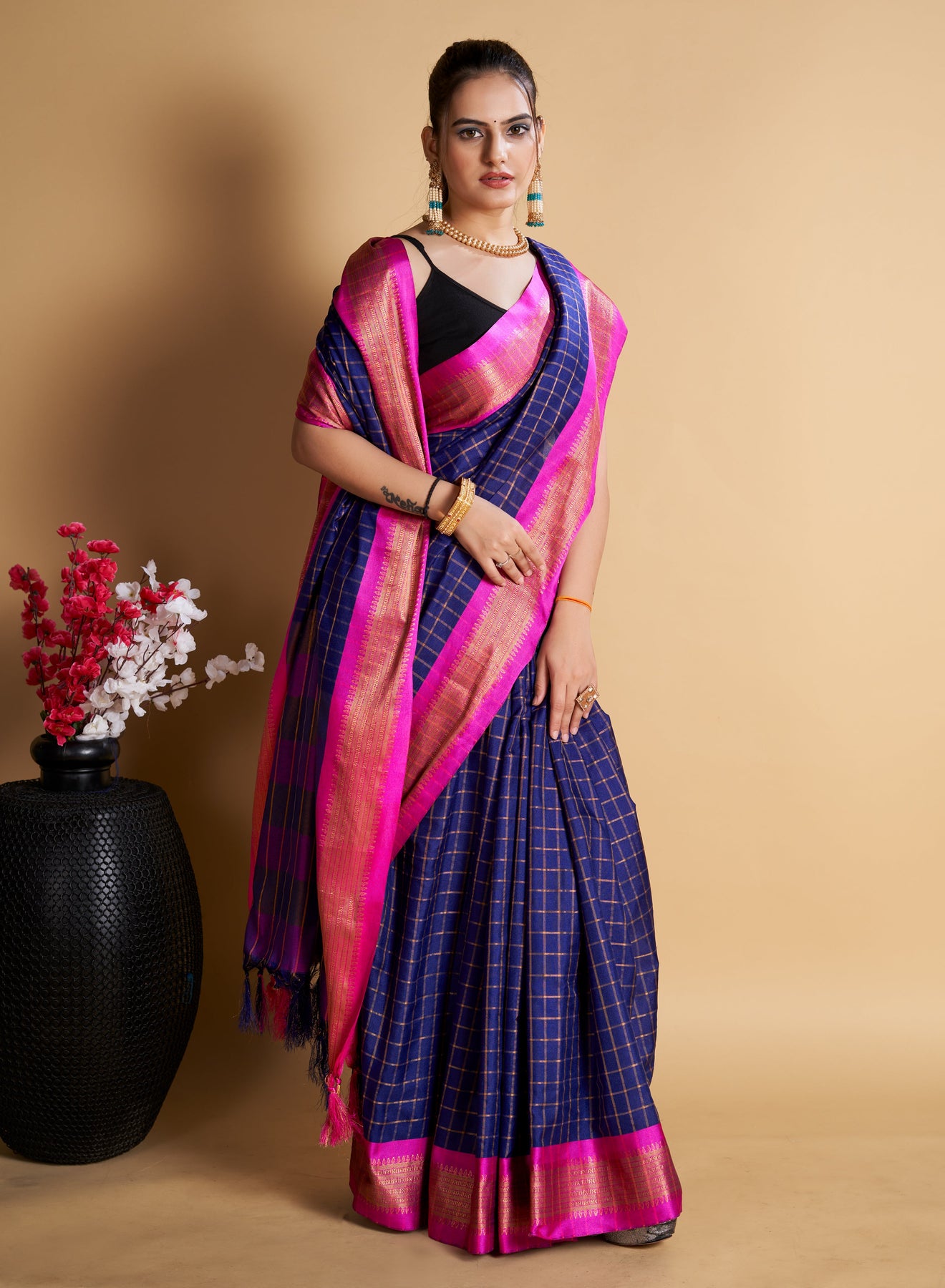 Party Wear Designer Blue Color Chex Pattern Silk Blend Saree Collection Colour :Blue Fabric :Silk Blend Length :5.5 Blouse (Stitched/Unstitched/Running) :Running Blouse Length :0.8 Work/Print :Weaving Wash & Care Instructions :Dry Clean Only