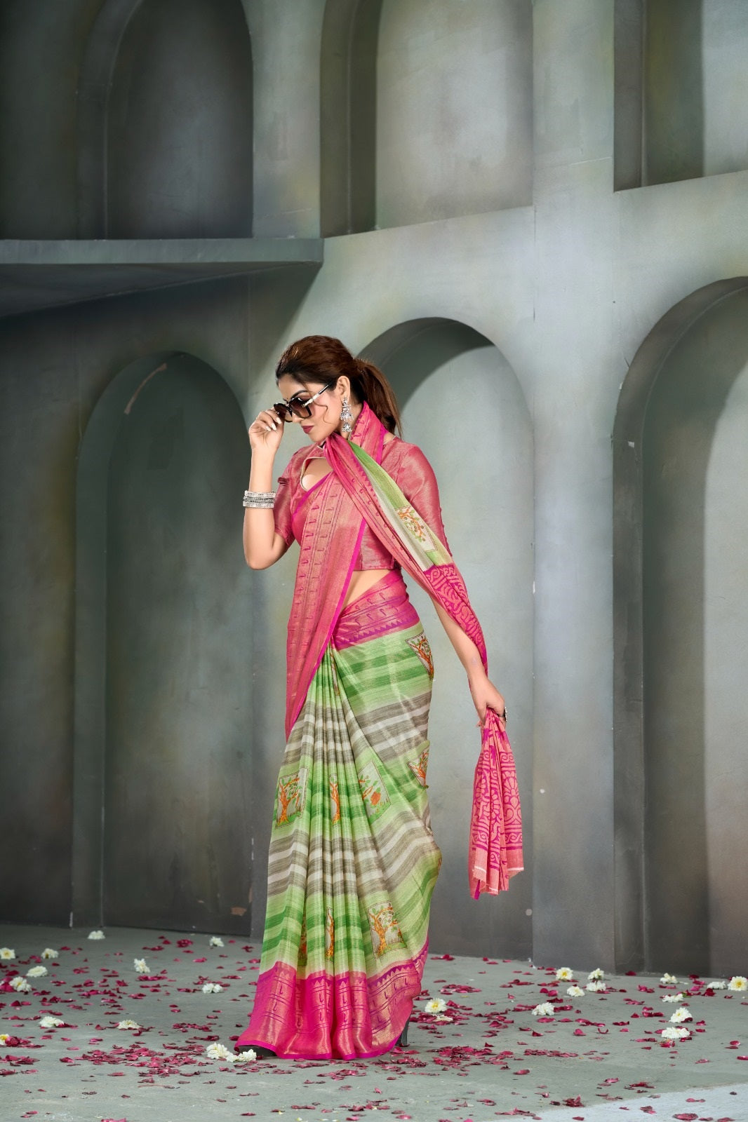 Casual Wear Printed Brasso Silk Saree With Un Stitched Blouse