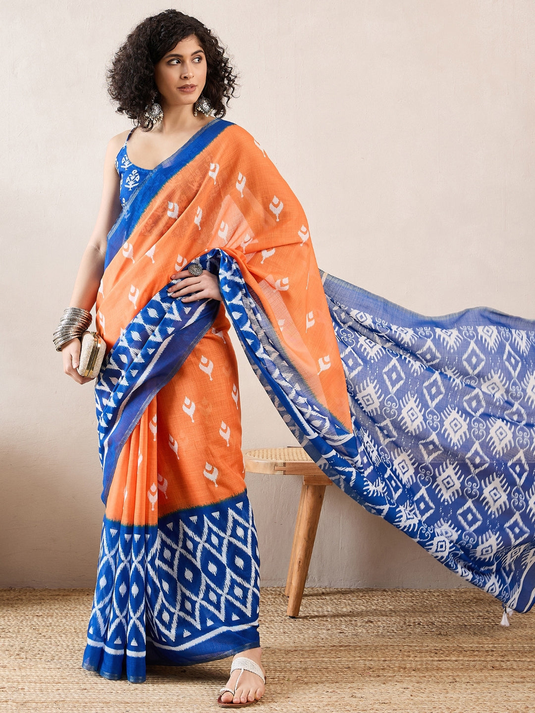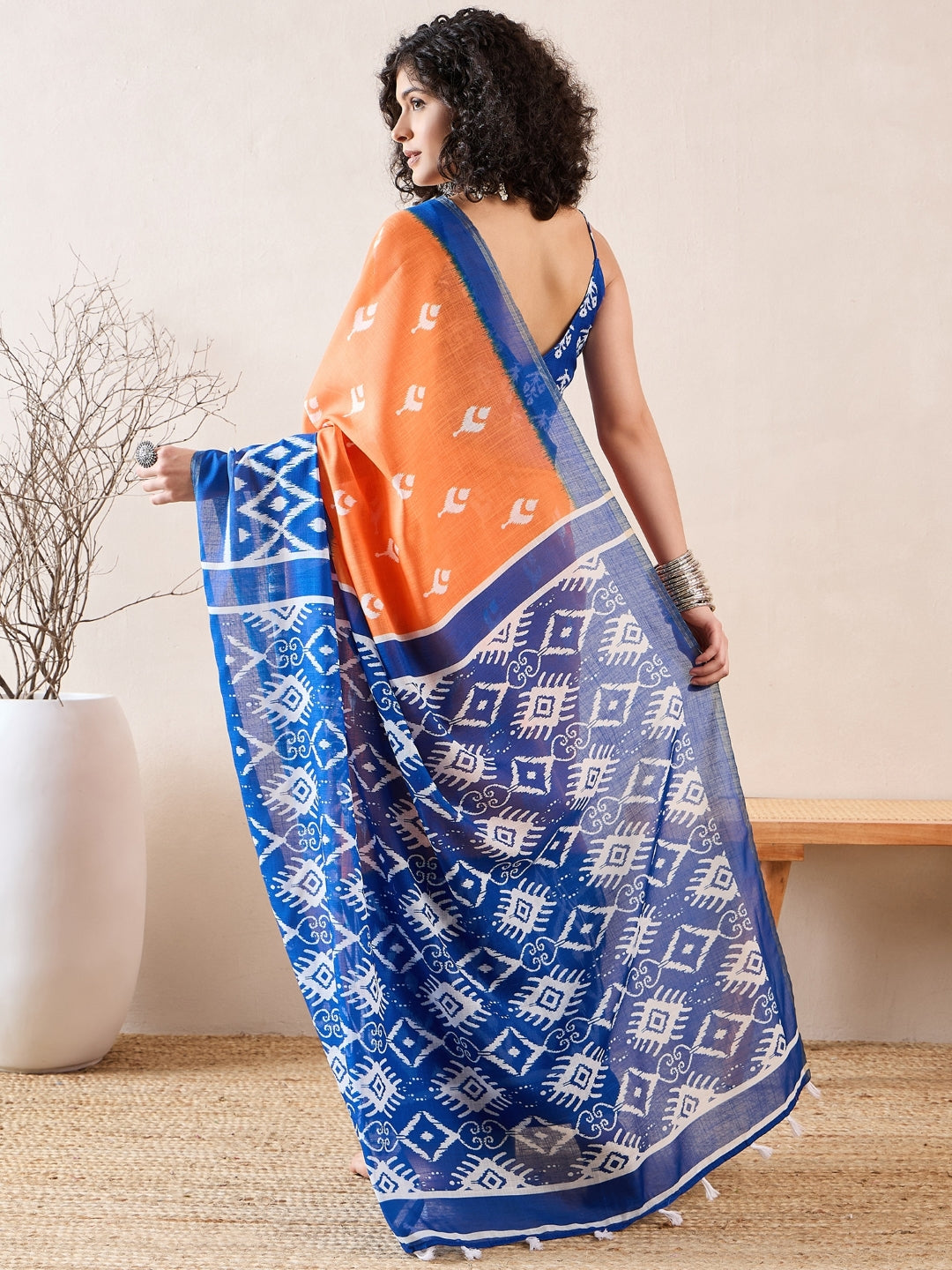 Ahika Women Orange Linen Ikat Printed Saree Wearing Our New Amazing Product You Look Very Graceful Linen Fabric Ethnic Motifs Pattern, Printed Border Sari. Thank You For Choosing Our Brand Product To Wear. We Hope That You Feel Too Much Better After Purchase Our Product. This Saree Is Best Match For Office-Work Wear, Normal Occasions, Get Together, Regular, Daily Use, Evening Wear. Perfect For Party, Wedding, Festival, Traditional, Causal, Bridle, Function, Trip. Best Gift For Your Loved Ones,Latest Saree, Saree Length: 5.5 Meter, 0.8 Meter Blouse, Width: 1.06 Meter Approx. Ahika Has Inspired Various Brands In India, While Constantly Evolving And Expanding The Product Line And Ruling The Hearts Of Loyal Customers.