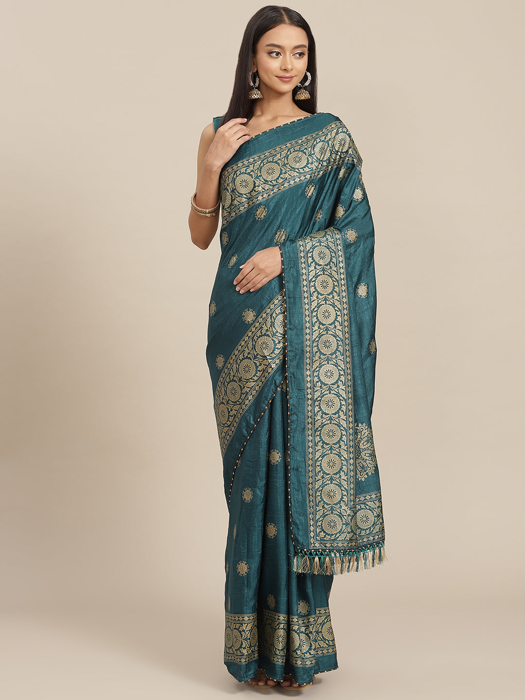 Party Wear Designervichitra Silk Green Colour Saree With Un Stitched Blouse