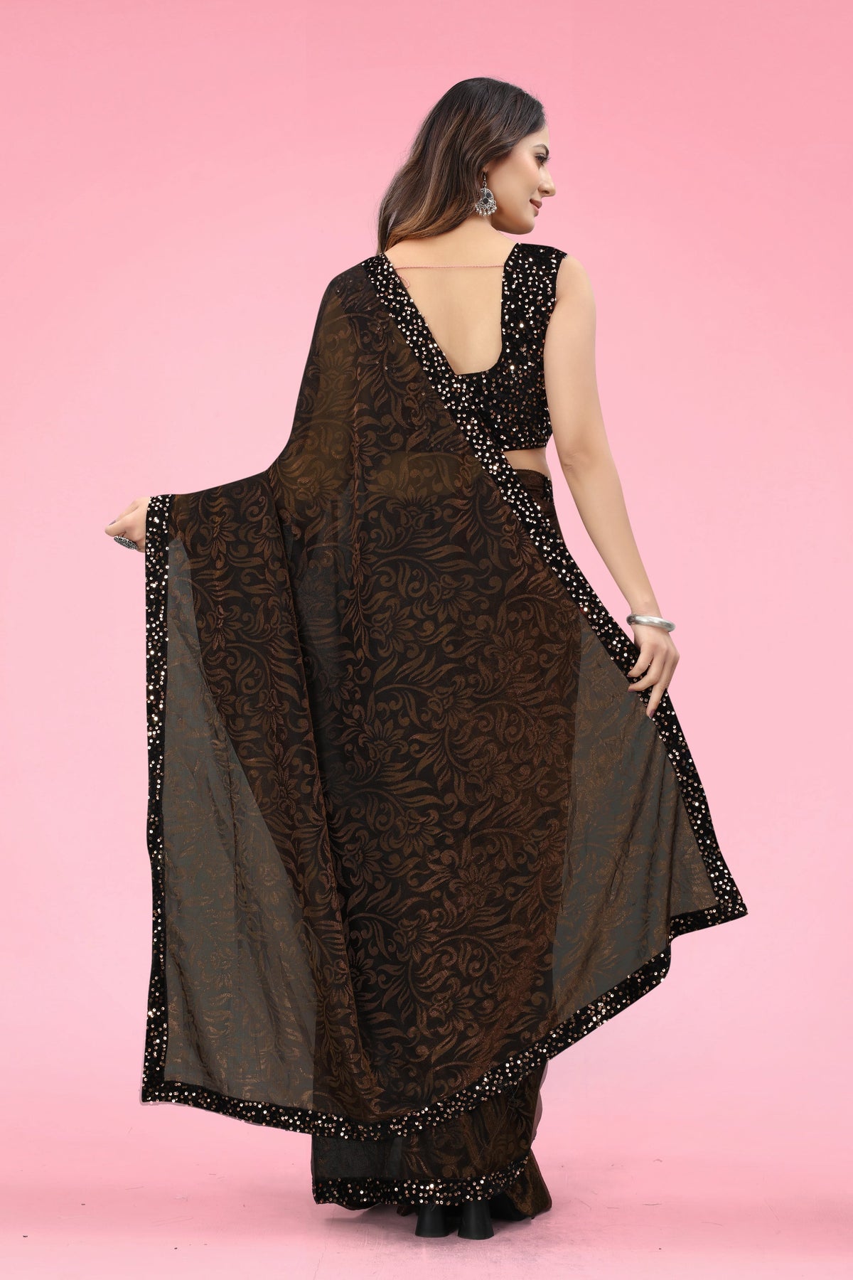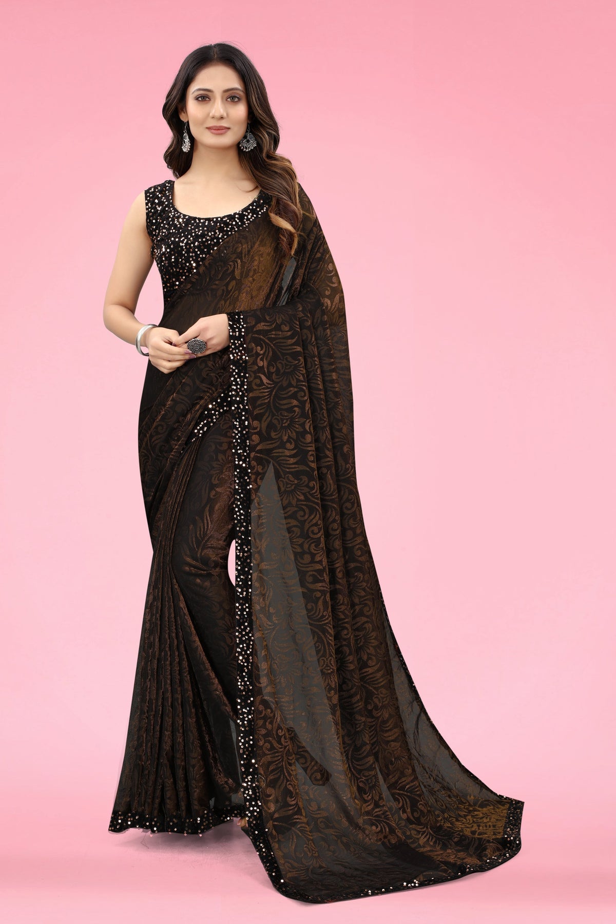 Pattern Embellished Pack Of-1 Occasion Casual, Party & Festive, Wedding Decorative Material Ruffle Embroidery Method Machine Fabric Care Dry Clean For The First Wash, Thereafter Hand Wash, Do Not Iron On Print/Embroidery/Embellishment, Do Not Dry Cleanfabric Lycra Blend Type Fashion Blouse Piece Unstitched Sari Style Regular Sari Sari Length 5.5M Blouse Piece Length 0.8 M Weight 0.375 Kg
