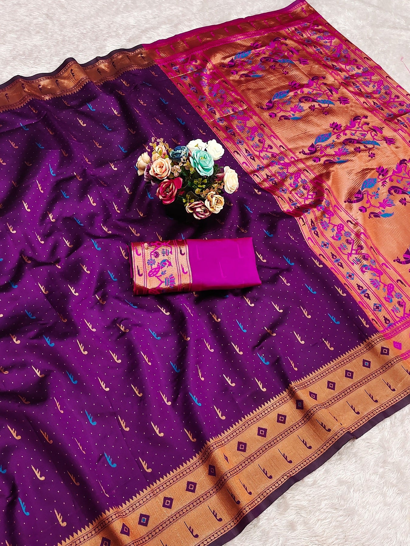 Party Wear Jari Weaving Worked Paithani Silk Saree With Un Stitched Blouse